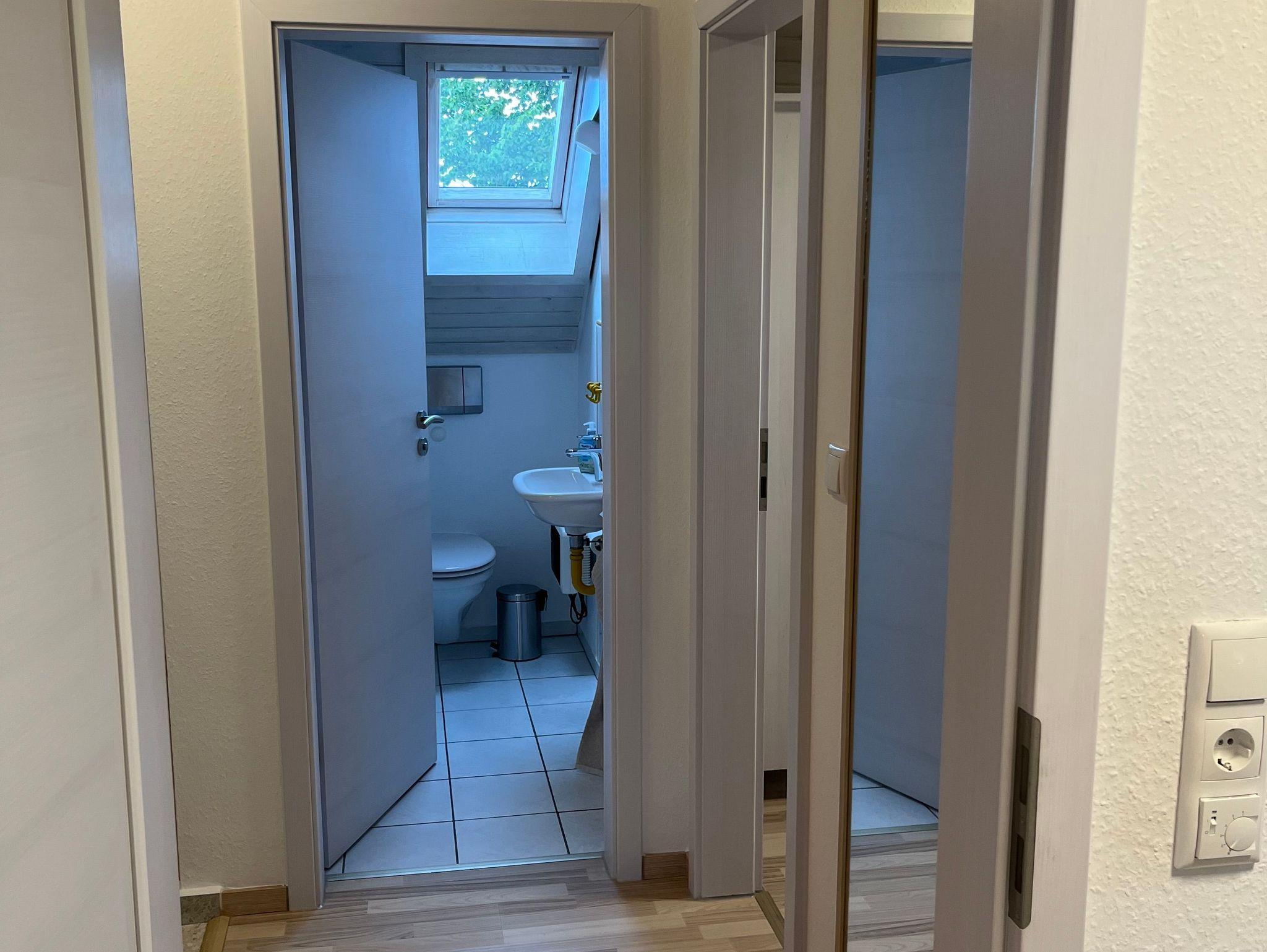- Unter der Treppe befindet sich ein kleiner Abstellraum mit Kinder-Hochstuhl, Tritthocker, hohem Regal und zusätzlichem Platz für Getränkekisten o.ä.