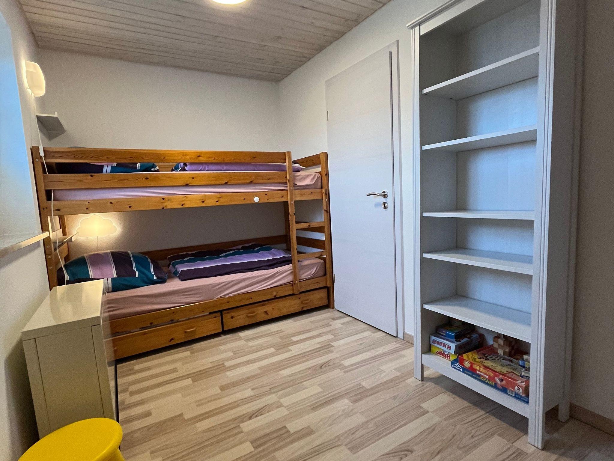 - 1 Schlafzimmer mit Etagenbett (zwei Mal 80x200) und einem Einzelbett (90x200).