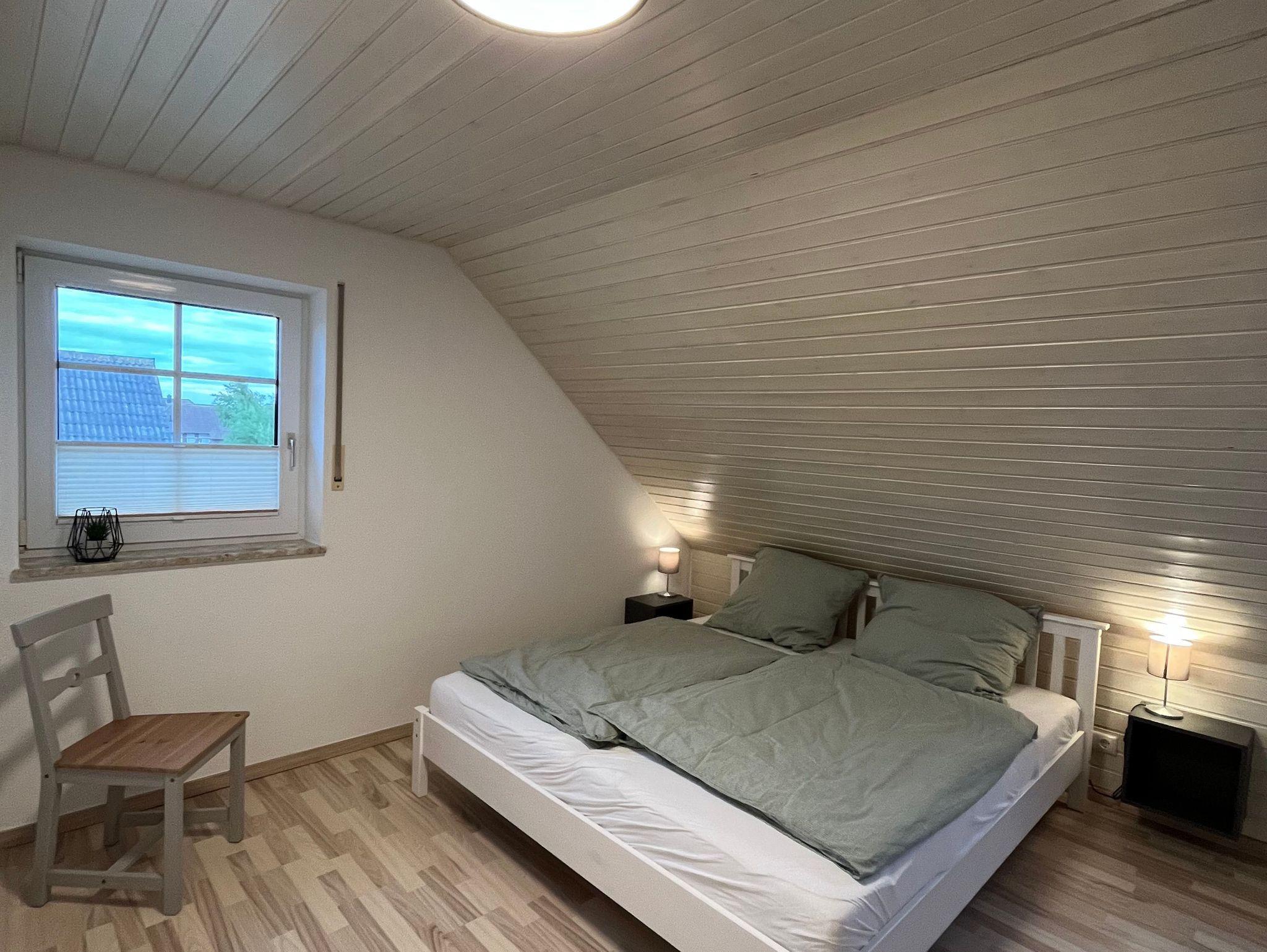 Im Obergeschoss befinden sich zwei gemütlich eingerichtete Schlafzimmer mit fünf Schlafmöglichkeiten, sowie ein Baby-Reisebett. Das Haus verfügt über ein Bad mit Dusche und WC im Erdgeschoss und ein Gäste-WC im Obergeschoss. Zudem ist eine Waschmaschine in dem von außen zugänglichem Abstellraum vorhanden.