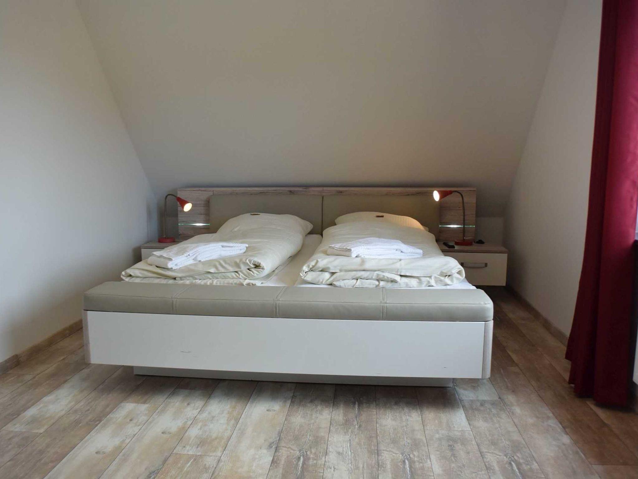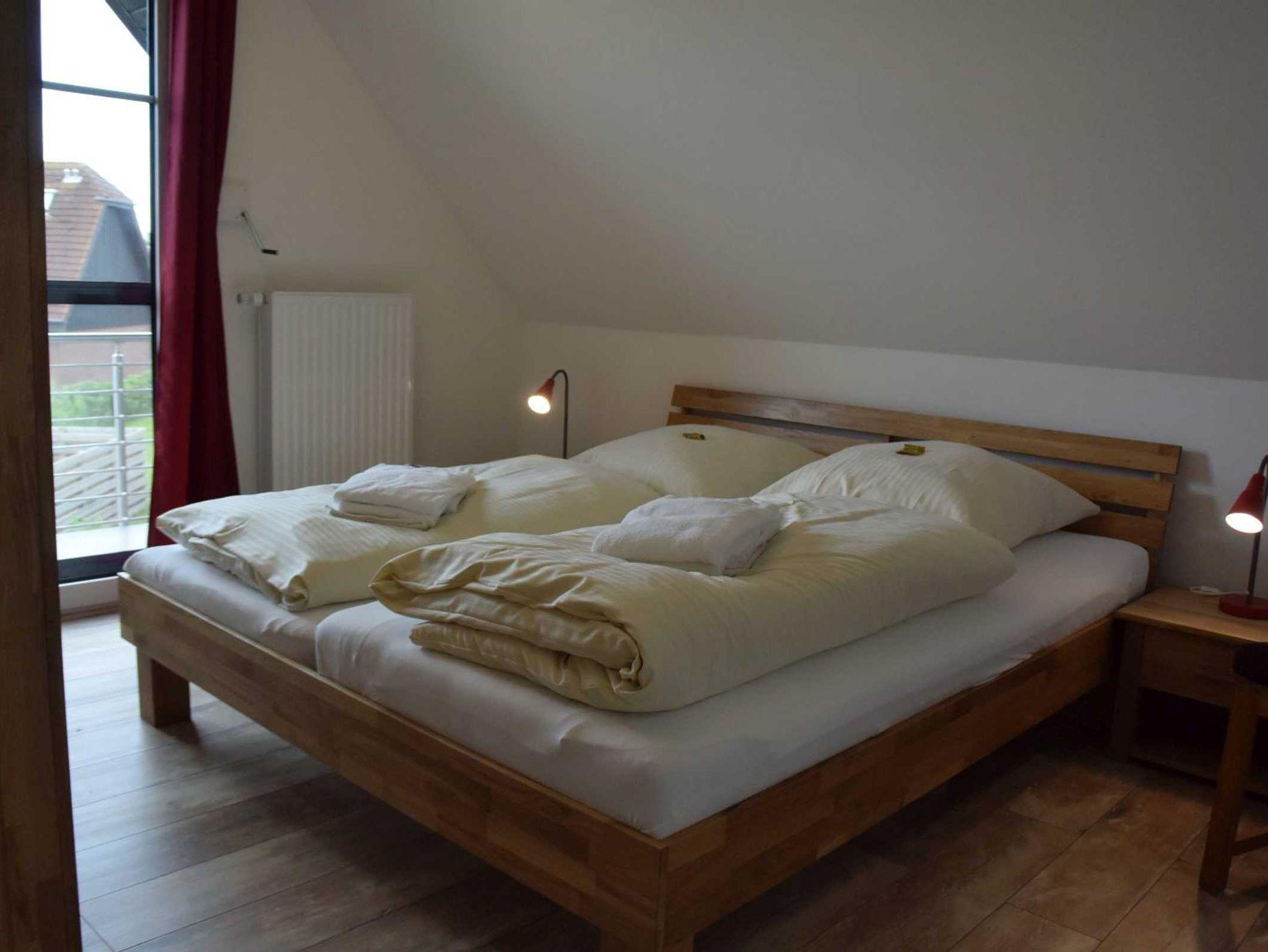 Alle Schlafräume befinden sich im 1. OG. Zwei Schlafräume sind mit Doppelbett 180/200 cm ausgestattet, in einem davon finden Sie zusätzlich noch ein Reisebettchen. Die beiden übrigen Schalfräume verfügen über jeweils 2 Einzelbetten 90/200 cm. Alle Schlafräume sind mit Flachbildschirm-TV ausgestattet. Ein Doppel- und ein Kinderzimmer verfügen über einen gemeinsamen Balkon.