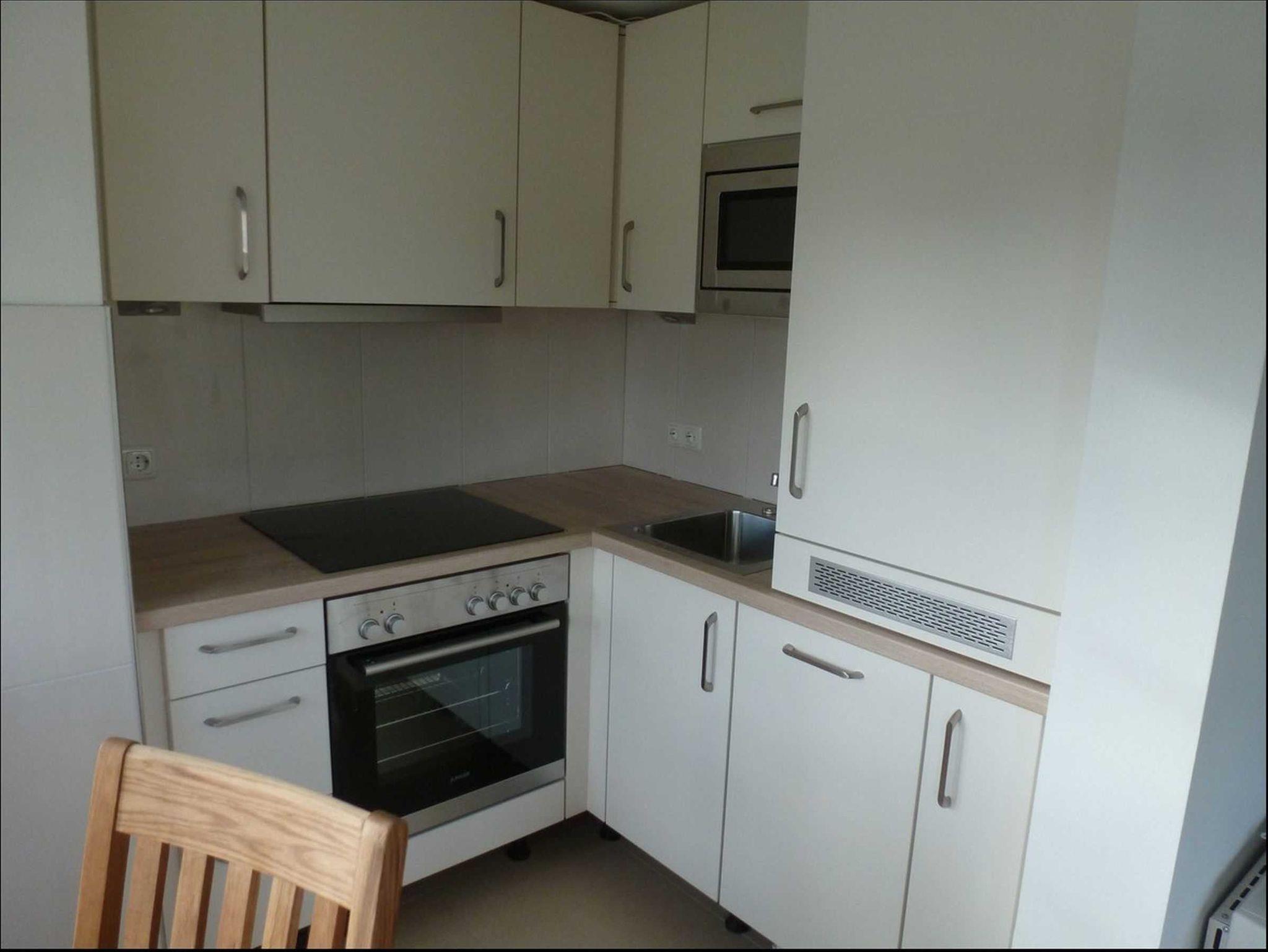 • Integrierte Küche mit E-Herd mit 4-Platten-Cerankochfeld, Backofen, Kühlschrank, Mikrowelle, Spülmaschine