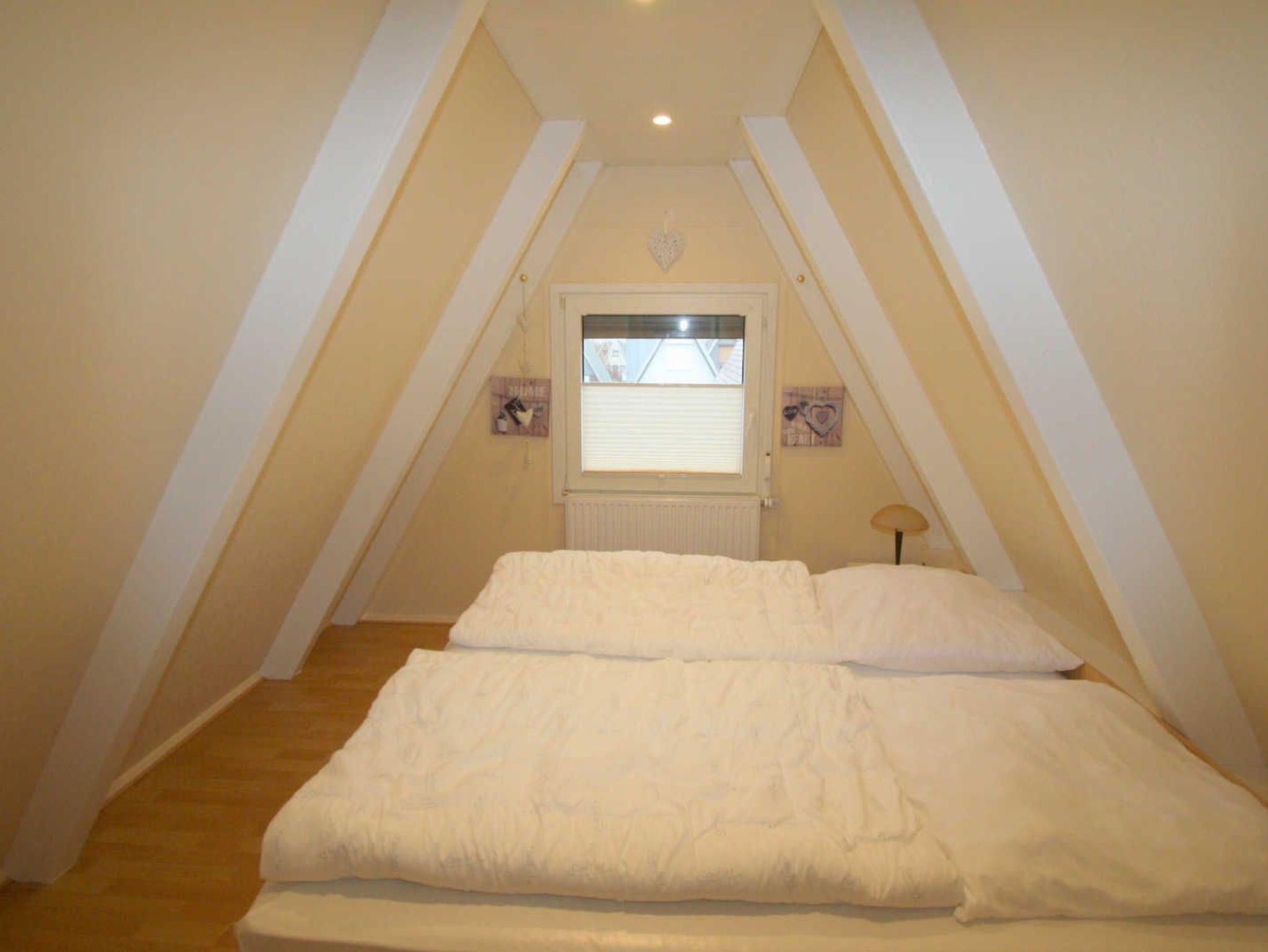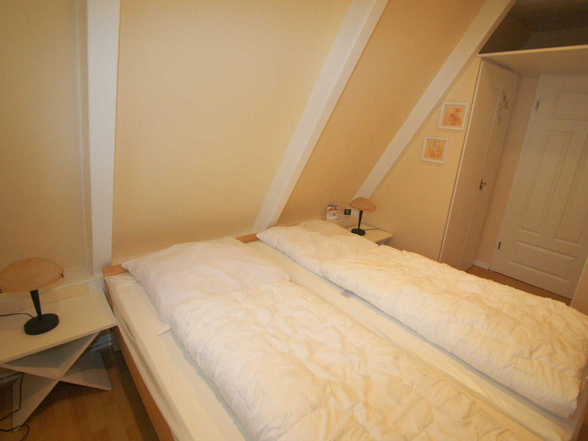 2 Schlafräume im Obergeschoß. (1 Doppelbett 180 x 200cm) + 2 Einzelbetten 90 x 200 cm