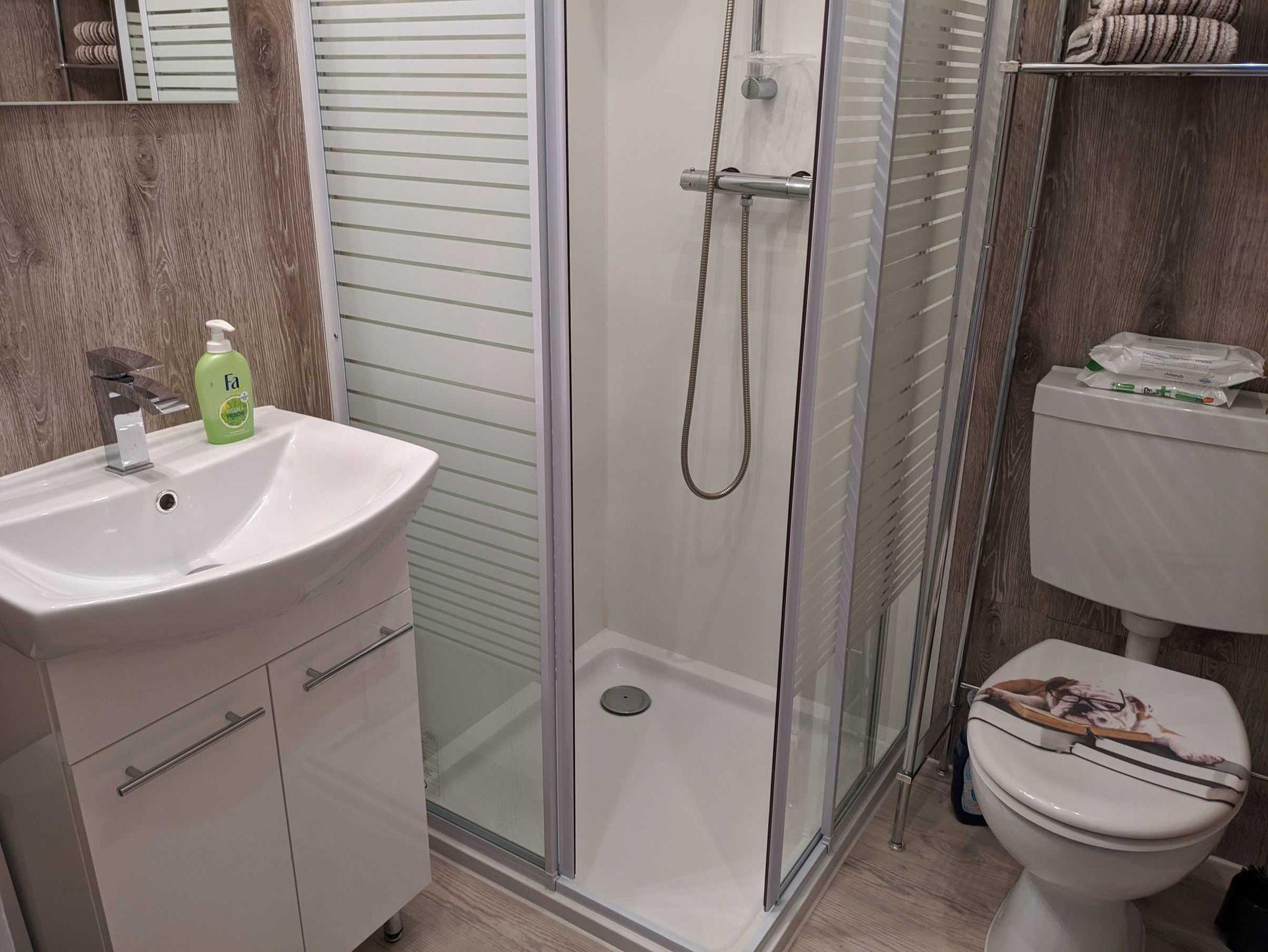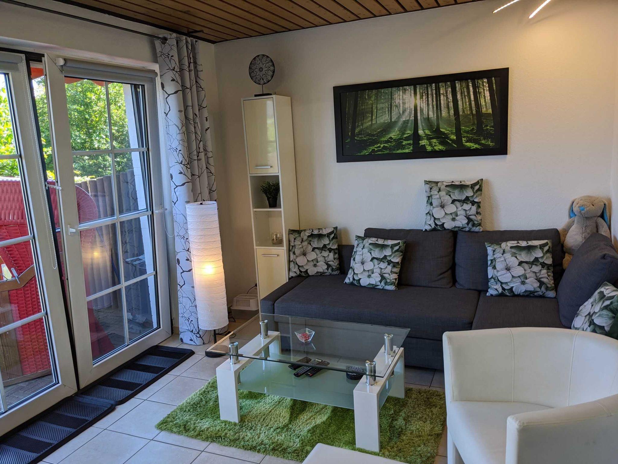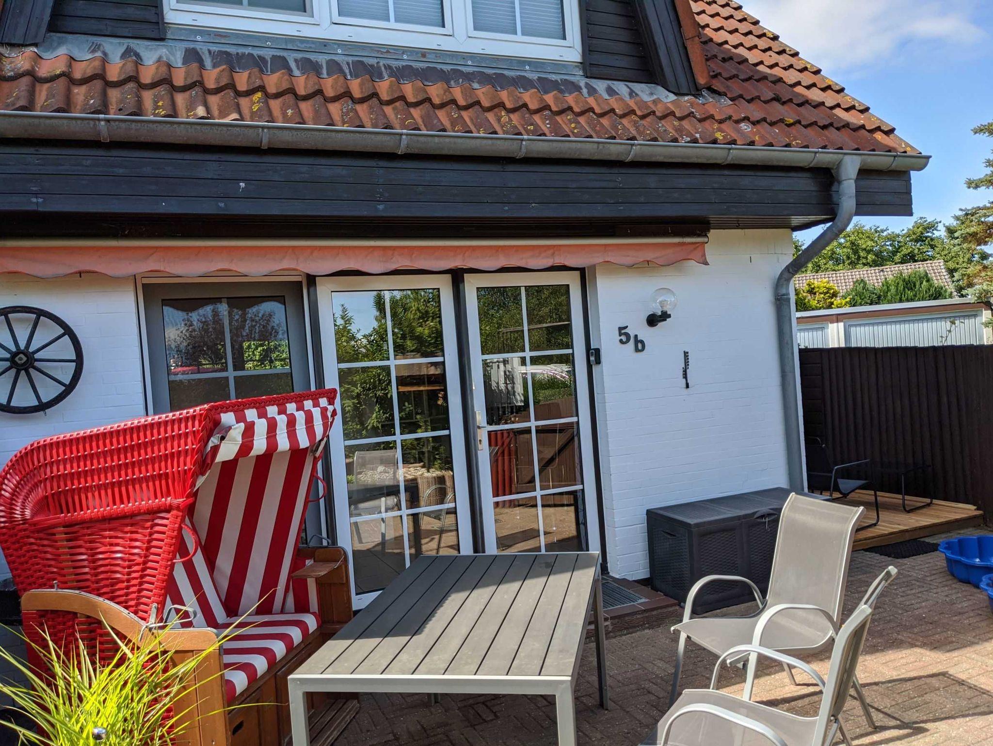 Moderne Ferienwohnung für 4 Personen. 1 Hund ist erlaubt. Große Terrasse mit Sitzecke, Strandkorb, Sandkiste für die Kleinen. Grill ist vorhanden. Wlan, DVD, Waschmaschine und Trockner (Münzautomat 50Cent 15 Minuten). 1 Schlafzimmer mit Doppelbett (140x200), 1 Schlafzimmer mit Etagenbett (90x200, Tragkraft max. 100 kg). Die Markise muss je nach Wetterlage bzw. abends eingefahren werden!