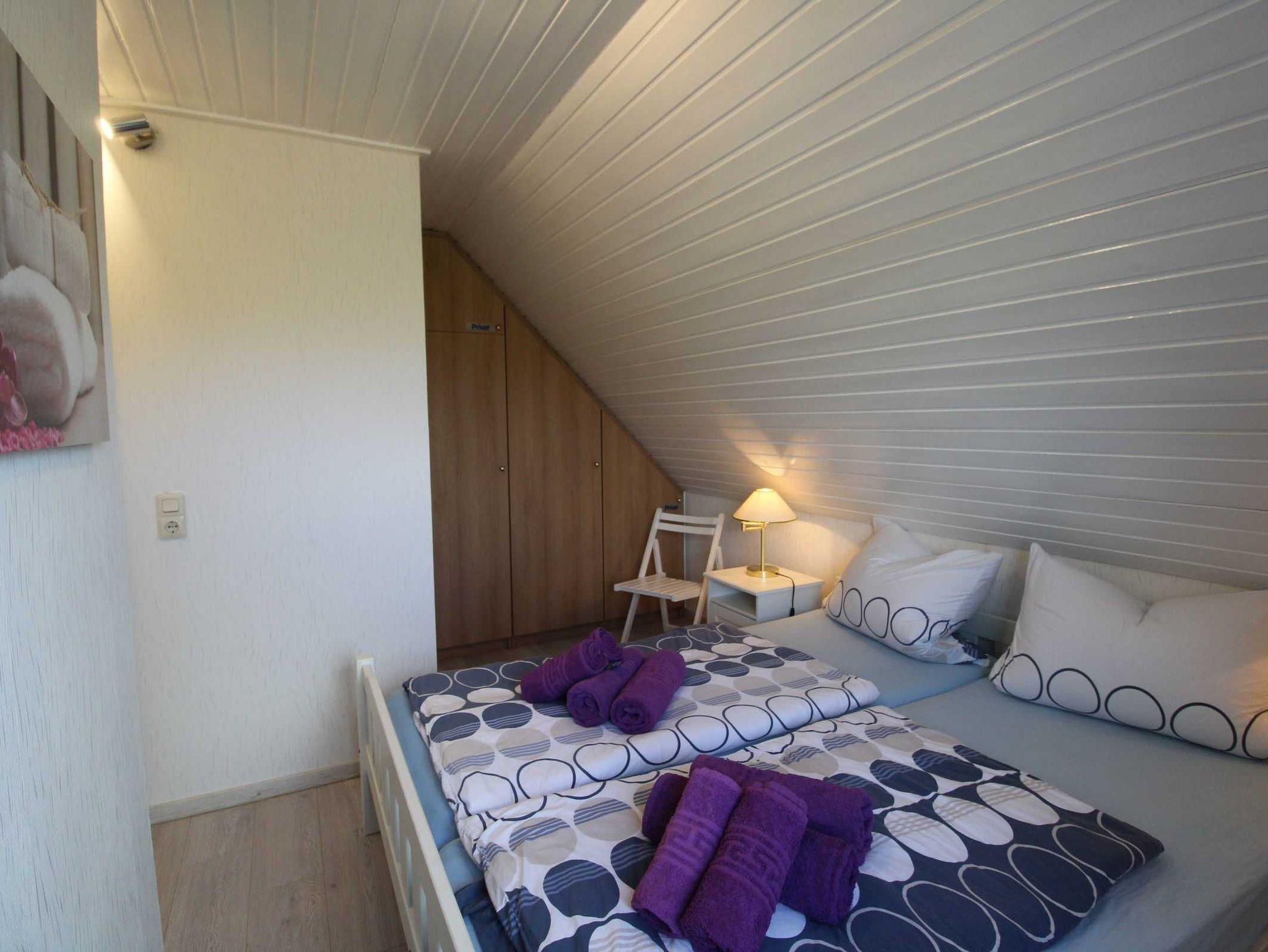 • 1 Schlafraum mit Doppelbett (1. Stock, Laminatboden)