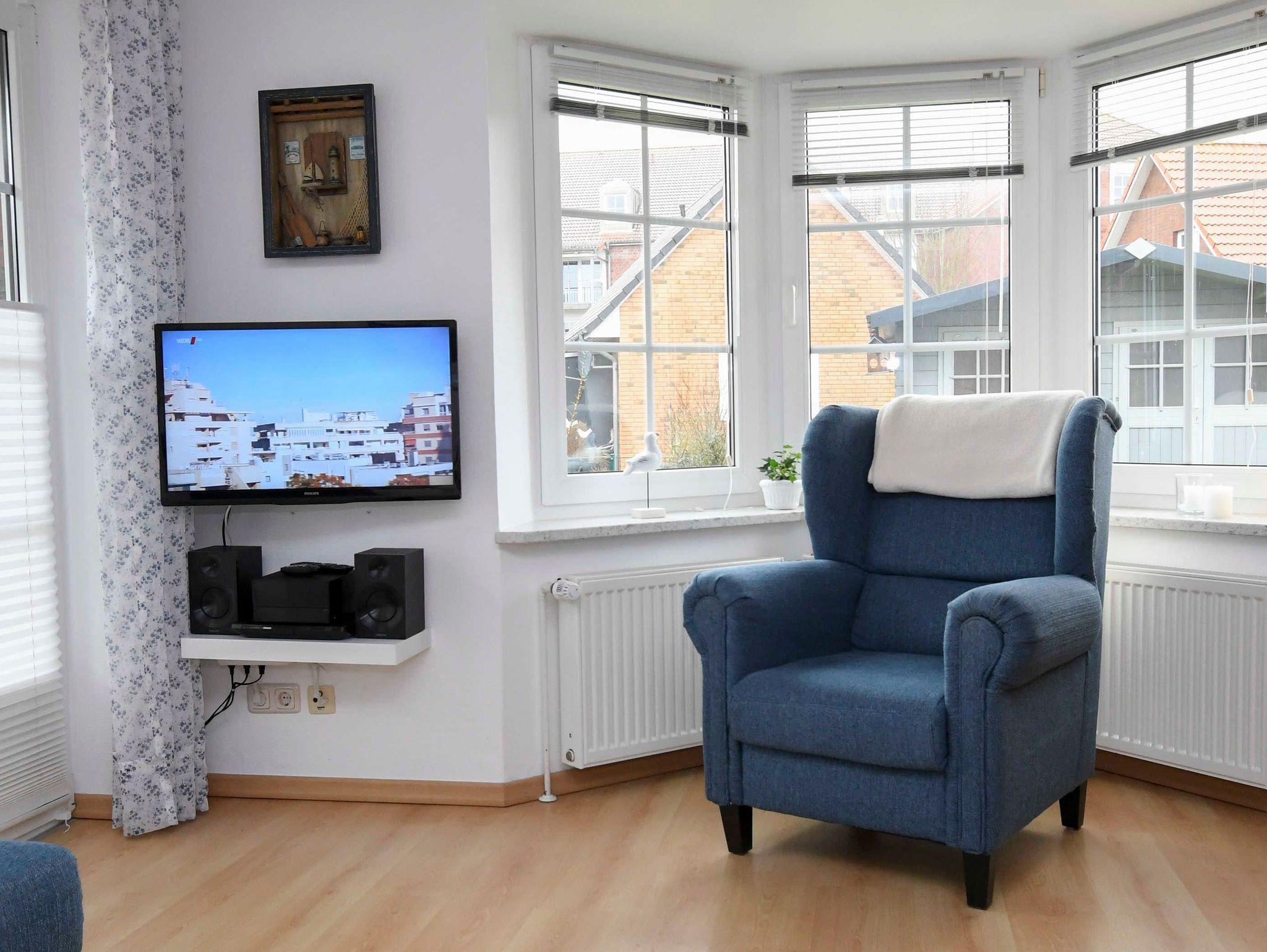 Stereoanlage mit CD-Player, Digital-Sat-TV (Flachbildschirm im Wohnzimmer)