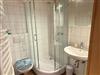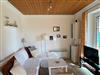 Kombi. Wohn-/Esszimmer mit Küchenzeile und Terrasse. Ein Schlafzimmer mit Doppelbett (französisches Kojenbett) und ein Schlafzimmer mit Einzelbett, Dusche/WC.