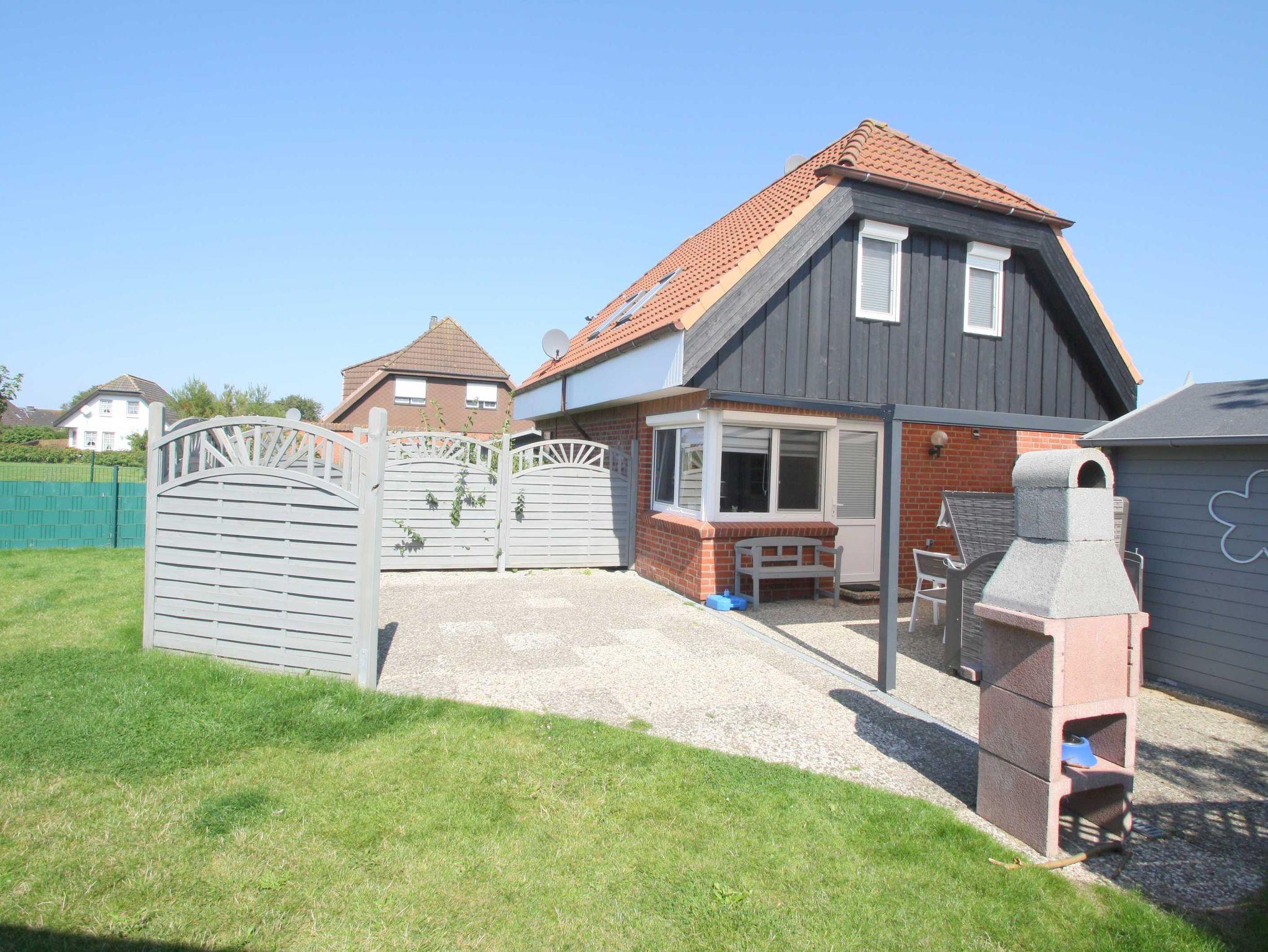 ruhige Sackgassenlage, grosser, ca. 300 m² eingezäunter Garten, schöne uneinsehbare Terrasse mit Strandkorb und Gartenmoebeln und Grill, ca. 500m zum Strand, Abstellraum für Fahrraeder .