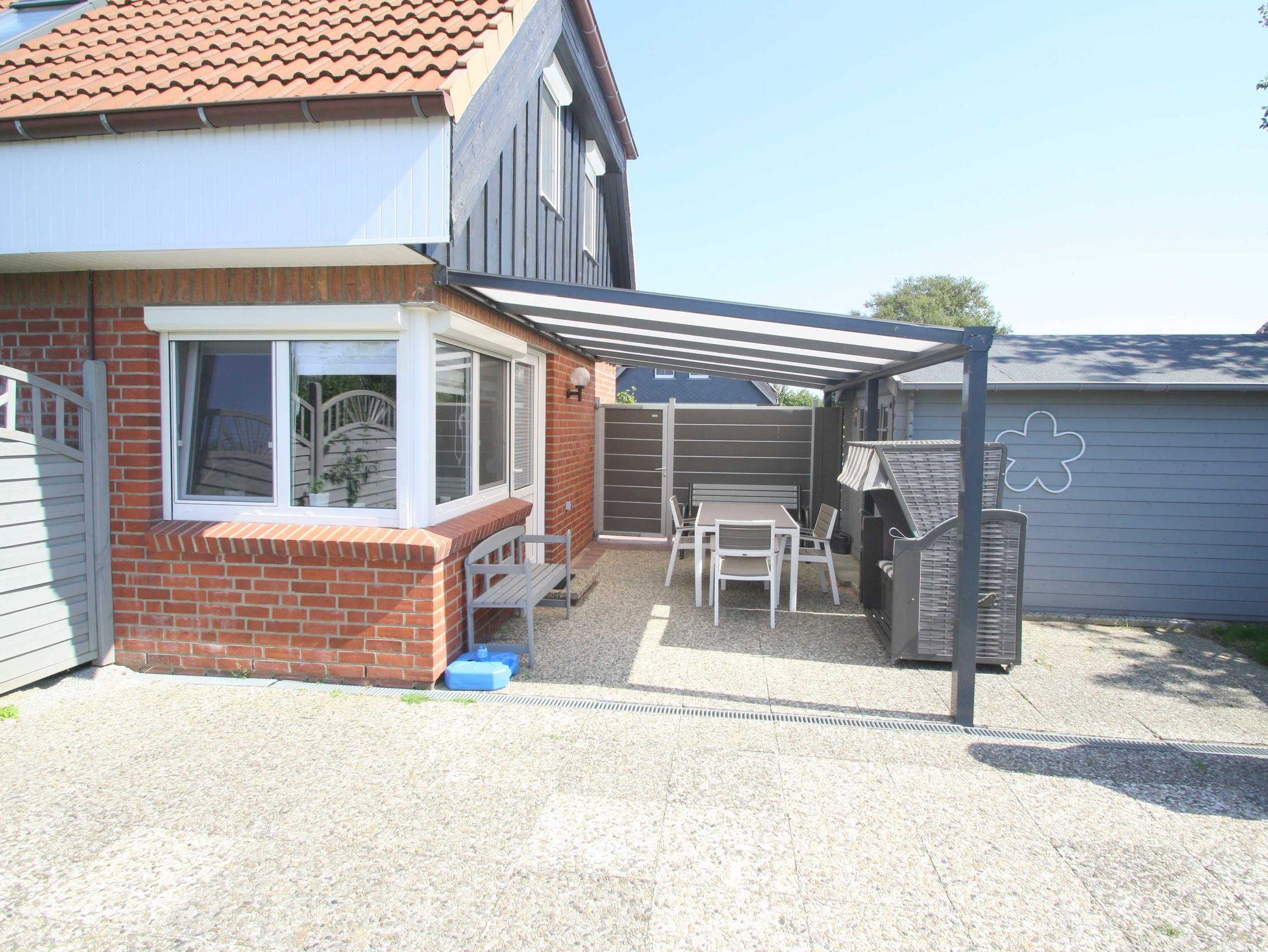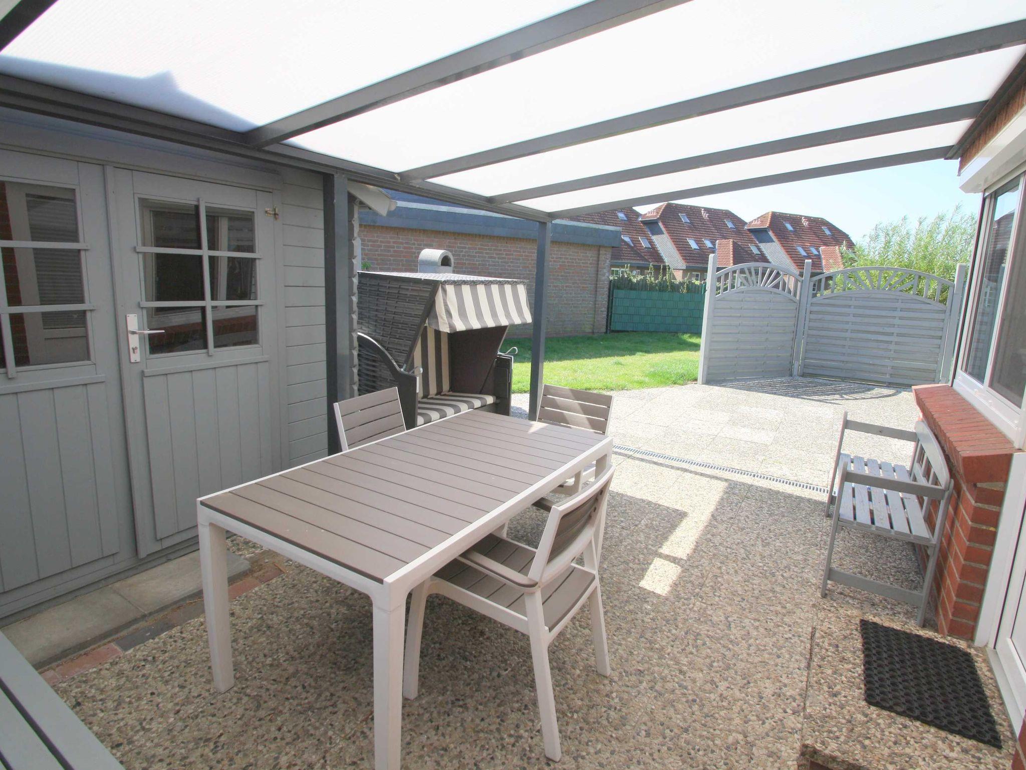 ruhige Sackgassenlage, großer, ca. 300 m² eingezaeunter Garten, schöne uneinsehbare Terrasse mit Strandkorb und Gartenmöbeln und Grill, ca. 500m zum Strand, Carport, -Abstellraum für Fahrraeder