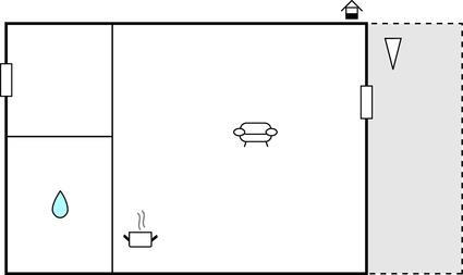 Lejligheden har et hyggeligt spisekøkken med en sammenklappelig seng. En fuld dobbeltseng til to personer er skjult der. Et fladskærms-tv til hyggelige tv-aftener er tilgængeligt. Det veludstyrede køkken har opvaskemaskine, keramisk kogeplade med indbygget komfur, køleskab med fryser, ovn, kaffemaskine og brødrister. Spisegruppen til to personer inviterer dig til at nyde et hyggeligt måltid med en vidunderlig romantisk udsigt over diget. Terrassen er ideel til at nyde det dejlige vejr. Det lille, men pæne badeværelse har brusebad, toilet og håndvask. Der er også en hårtørrer.