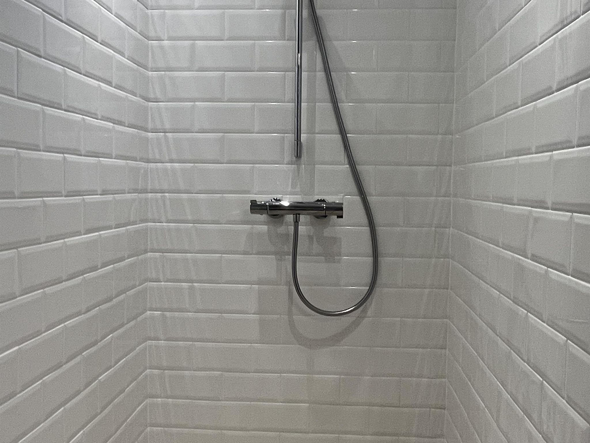 Der Küchenbereich, der sich offen im Loft befindet hat eine Spülmaschine, Kühlschrank mit Eisfach und eine große Ausstattung von allem was das Herz begehrt, wenn man einen längeren Urlaub plant und gerne kocht. Es gibt ein Badezimmer mit ebenerdiger Dusche, WC und Waschbecken.