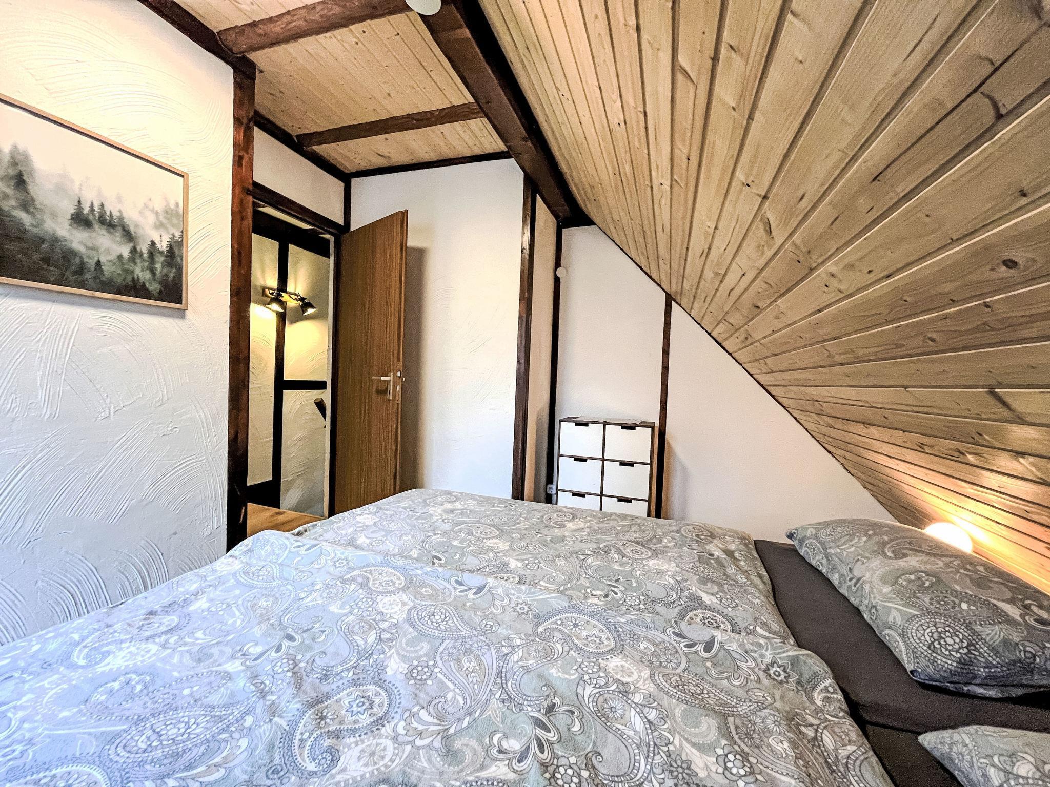 "Tim´s Alm am Silbersee", 4-room house 80 m2 on 2 levels. Bright, renovated in 2024, tasteful and cosy furnishings: living/dining room with Scandinavian wood stove, dining nook and satellite TV (flat screen), radio and CD-player. Exit to the terrace. 1 room with 1 double bed (2 x 90 cm, length 200 cm), shower/WC. Kitchen (oven, 4 ceramic glass hob hotplates, toaster, kettle, microwave, freezer, electric coffee machine). Shower/WC. Upper floor: 1 room with 1 double bed. Exit to the balcony. 1 room with sloping ceilings with 2 beds (90 cm, length 200 cm). Exit to the balcony. Large terrace roofed, lawn. Terrace furniture, barbecue. Facilities: children's high chair, logs (extra). Internet (WiFi). Parking at the house. Please note: non-smoking house. Maximum 4 pets/ dogs allowed. Smoke alarm, fire extinguisher. The neighborhood is sensitive to noise. The garden is completely fenced. Only dogs allowed.
