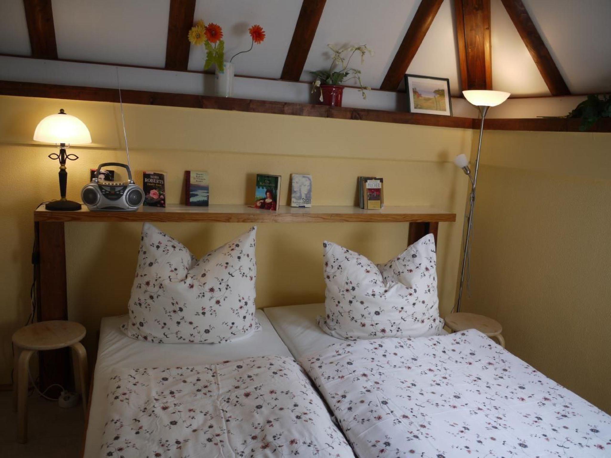 The holiday home has 3 levels, a bedroom on the 1st floor with wardrobe (a double bedroom with separate WC and washing area, on the 2nd floor a double bedroom, a bedroom with a single bed and a baby travel cot. Energy costs (electricity, heating, rubbish and water) included.