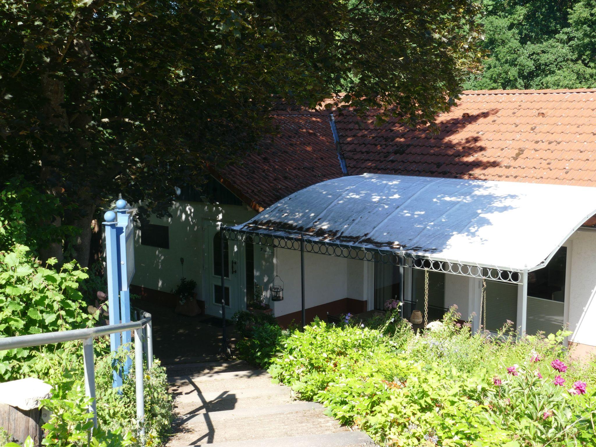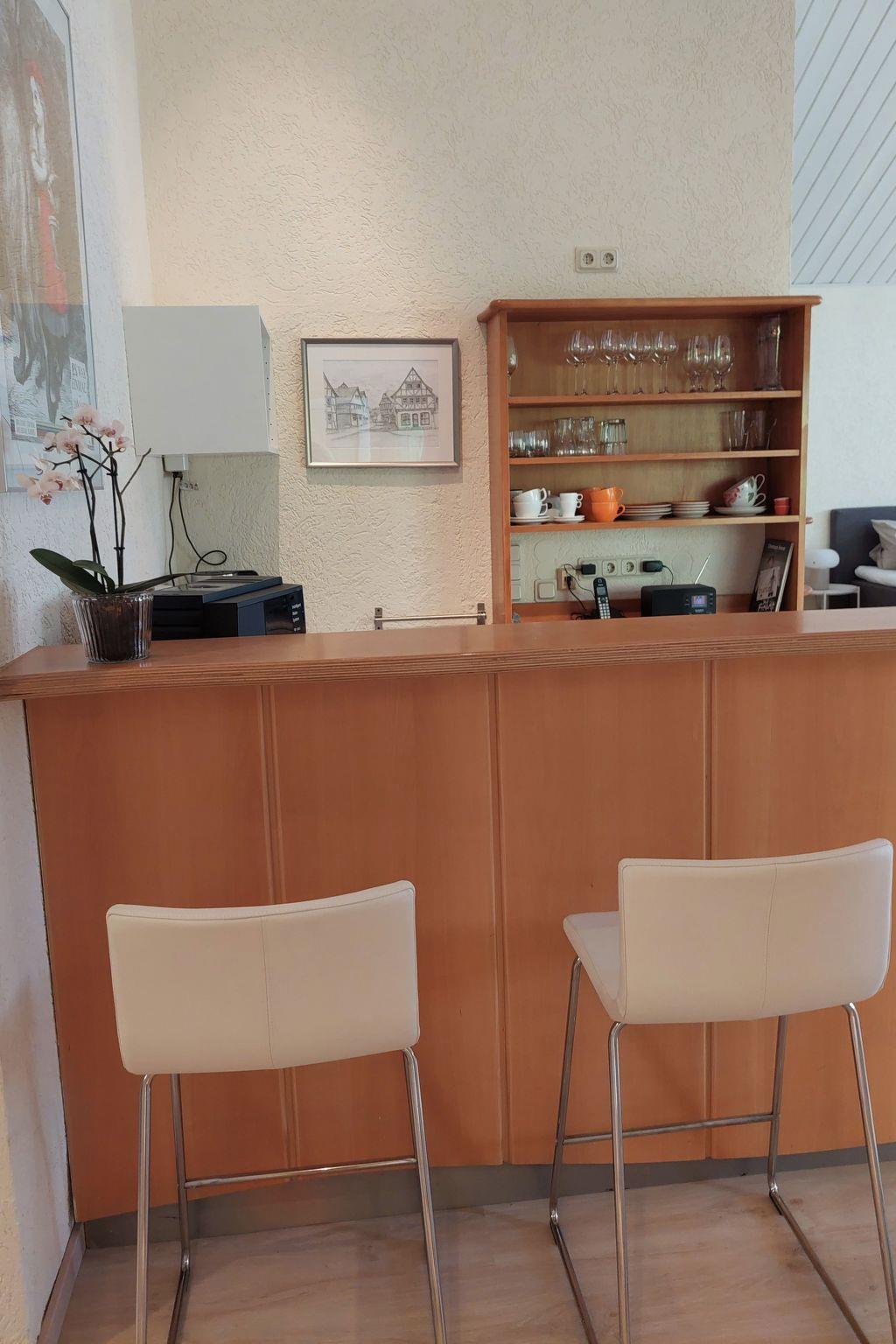 Our holiday flat has been available to guests since 2022. It consists of a 70 m2 living room/bedroom, a kitchenette and a west-facing covered terrace. The furnishings are comfortable and tastefully decorated. Sufficient crockery, microwave, telephone, Smart TV, DAB radio, bread roll service is also available on request. Experience, relax and enjoy the country and its people with the meinecard plus guest card. The Grimm Heimat Nordhessen guest card offers you around 140 attractions in the region, which you can use free of charge. On a property of 2000m² there are 2 holiday flats and two holiday houses, which fulfil the same standard in the equipment.