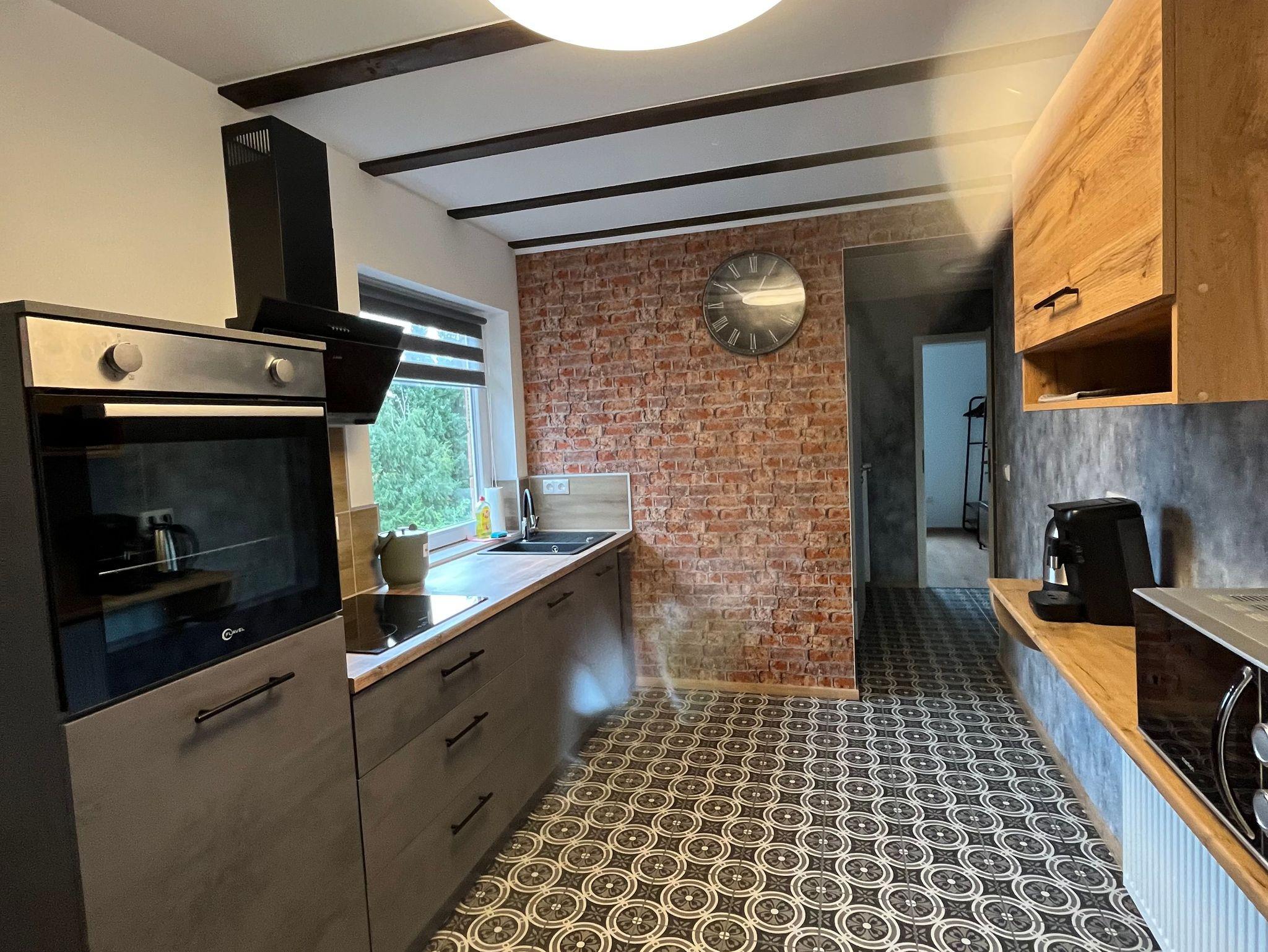 Die Küche verfügt über eine Spülmaschine, Kühlschrank, Backofen mit Ceranfeld, Mikrowelle, Wasserkocher, Senseo Kaffeemaschine, Geschirr und reichlich Zubehör.