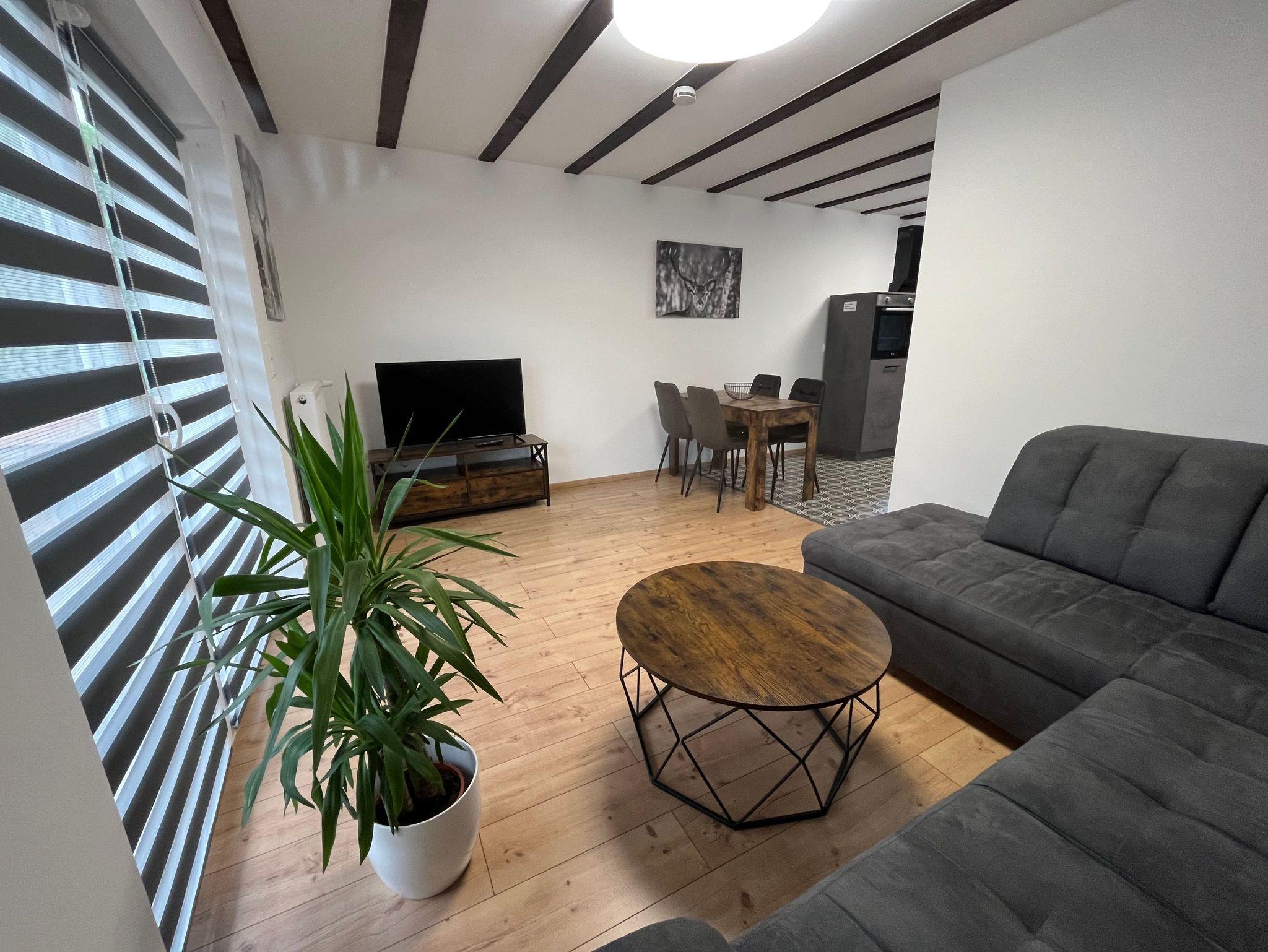 Unsere Ferienwohnung bietet Platz für 2 bis 4 Personen und verfügt über ein Schlafzimmer, ein großes Wohnzimmer mit Küche, Bad und ein großer Flur.