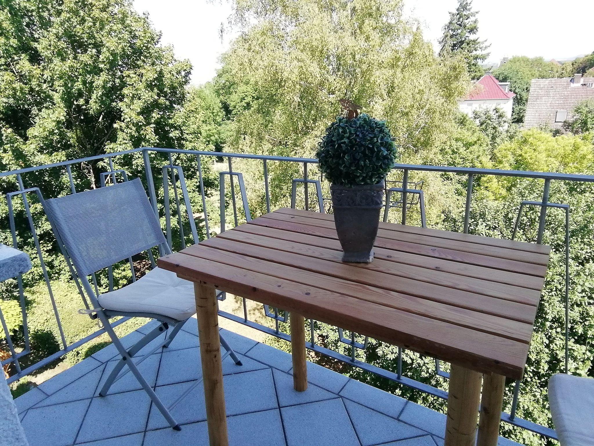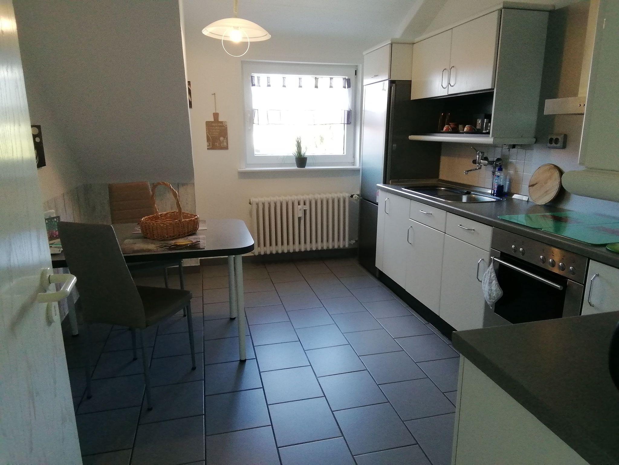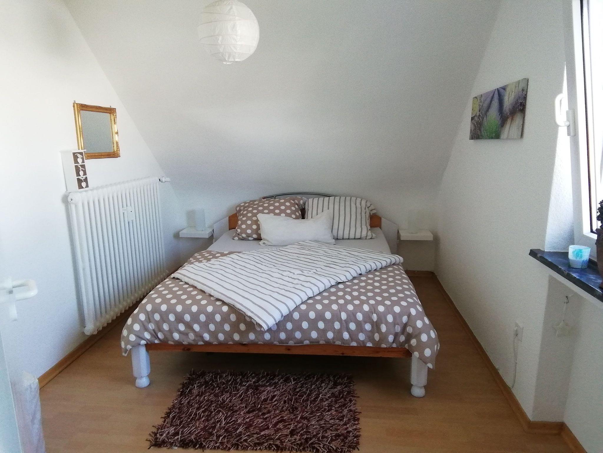 Unsere helle freundliche eingerichtete Dachwohnung mit kleinem Balkon ( nicht geeignet für kleine Kinder) für 2 Pers. auf Anfrage + max 1 Kind im 2. Obergeschoss ist 60 qm groß, sie liegt zentral in ruhiger Umgebung.
