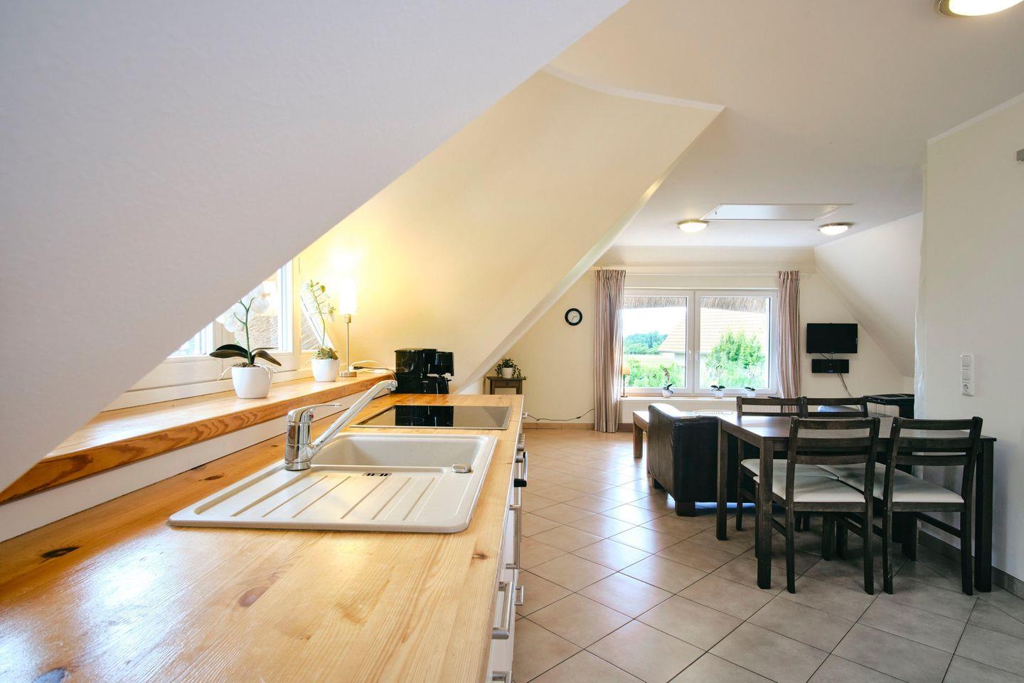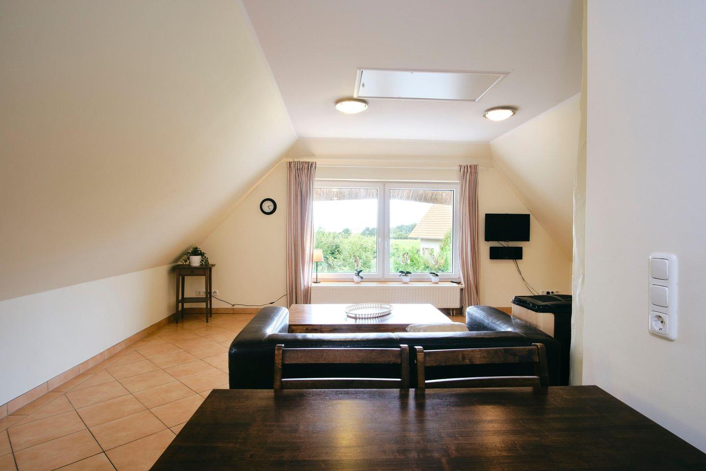 Diese ca. 58 m² große, wunderschön eingerichtete Ferienwohnung "Aufschwung II" für bis zu 2 Personen und 1 Kleinkind liegt im Obergeschoss eines Ferienhauses in dem kleinen Ort Fuhlendorf an der südlichen Boddenküste im Landkreis Nordvorpommern.