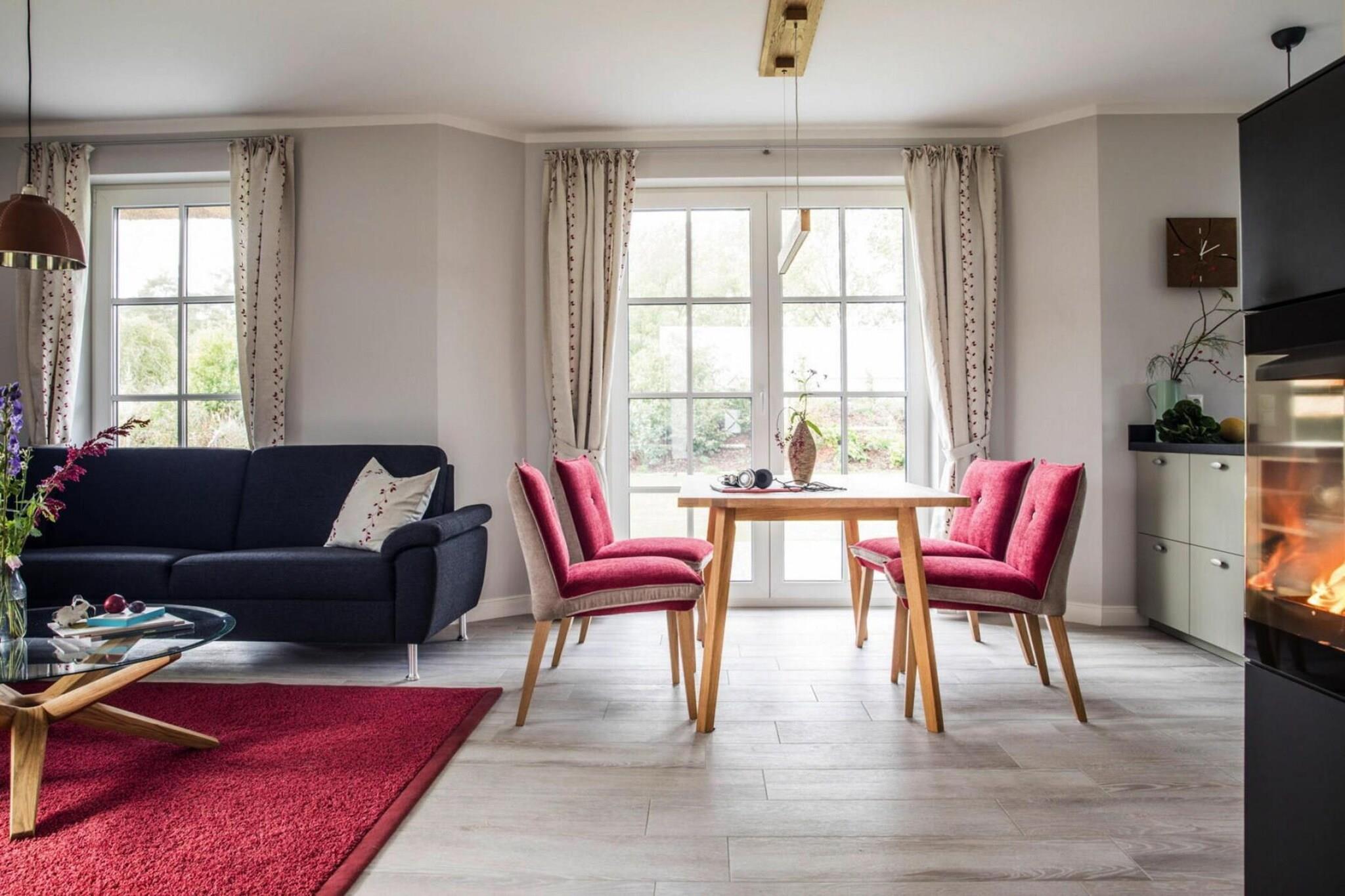 Ankomme og have det godt: Nyt stråtækt sommerhus med idyllisk beliggenhed på Bodden, kun 170 meter fra vandet. Fra sauna og pejs til WiFi og satellit-tv med Sky til komfortable boxmadrasser, kan du nyde hvert sekund af din ferie her i en luksuriøs atmosfære. Slap af i fred i det naturlige badeområde ved Bodden-vandet eller tag en tur til den livlige Østersøstrand i Zingst, som ligger 17 kilometer væk. Omkring Bodden venter idylliske landsbyer og et unikt landskab på at blive opdaget af dig. Kommunerne Fuhlendorf og Bodstedt er idyllisk beliggende på Boddens sydkyst. I de varmere måneder sejler passagerskibe dagligt fra Bodstedt til Darß-halvøen i Born og videre via Neuendorfer Bülten til Ahrenshoop-Althagen. Højdepunkter: Forbrugsbaserede energiomkostninger, sengelinned, håndklæder, slutrengøring WLAN Aktiviteter i nærheden: Bodstedt er kendt for sin traditionelle havn for Zeesen-bådene, der ligger der. Individuelle ejere af Zeesenboote tilbyder forlystelser, og sådan en mulighed må man ikke gå glip af!Den store Bodstedt Zeesenboot-regatta er startet hvert år siden 1965 den første weekend i september.