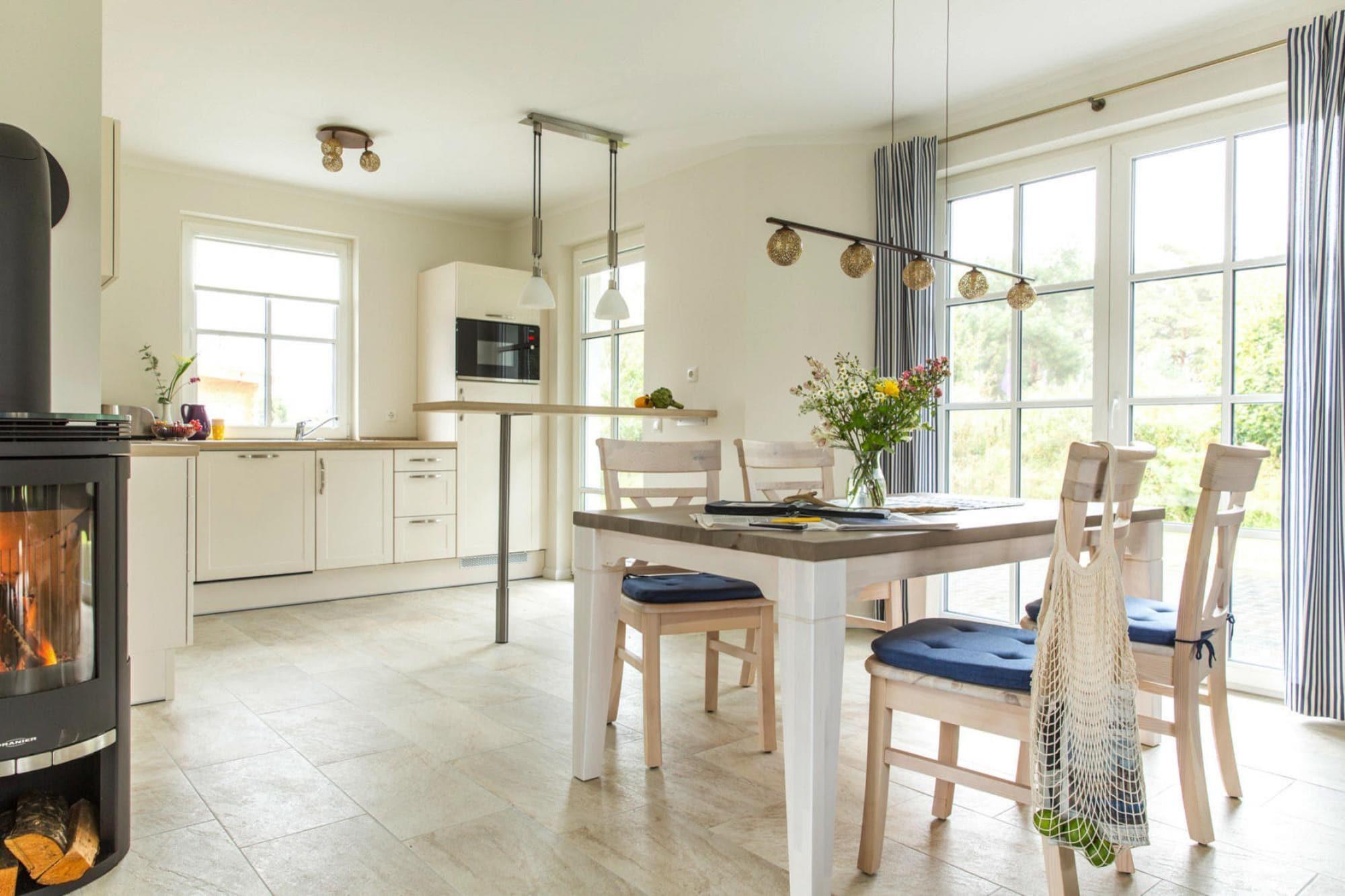 Ankomme og have det godt: Nyt stråtækt hus med idyllisk beliggenhed ved bugten, kun 170 meter fra vandet. Fra sauna og pejs til WiFi og satellit-tv med Sky til komfortable boxmadrasser, kan du nyde hvert sekund af din ferie her i en luksuriøs atmosfære. Eller du kan slappe af i fred i det naturlige badeområde ved Bodden-vandet eller tage en tur til den livlige Østersøstrand i Zingst, som ligger 17 kilometer væk. Omkring bugten venter idylliske landsbyer og et unikt landskab på at blive opdaget af dig. Kommunerne Fuhlendorf og Bodstedt ligger meget idylliske på Boddens sydkyst. I årets varmere måneder sejler passagerskibe fra Bodstedt til Darß-halvøen til Born og videre gennem Neuendorfer Bülten til Ahrenshoop-Althagen. Detaljer: Forbrugsbaserede energiomkostninger, sengelinned, håndklæder, slutrengøring, WiFi Aktiviteter i nærheden: Bodstedt med sin traditionelle havn er kendt for Zeesen-bådene, der ligger der. Individuelle ejere af Zeesenbooten tilbyder en tur, og sådan en mulighed må du ikke gå glip af!Hvert år den første weekend i september siden 1965 den store Bodstedt Zeesenbootregatta Ikke egnet til personer med nedsat mobilitet