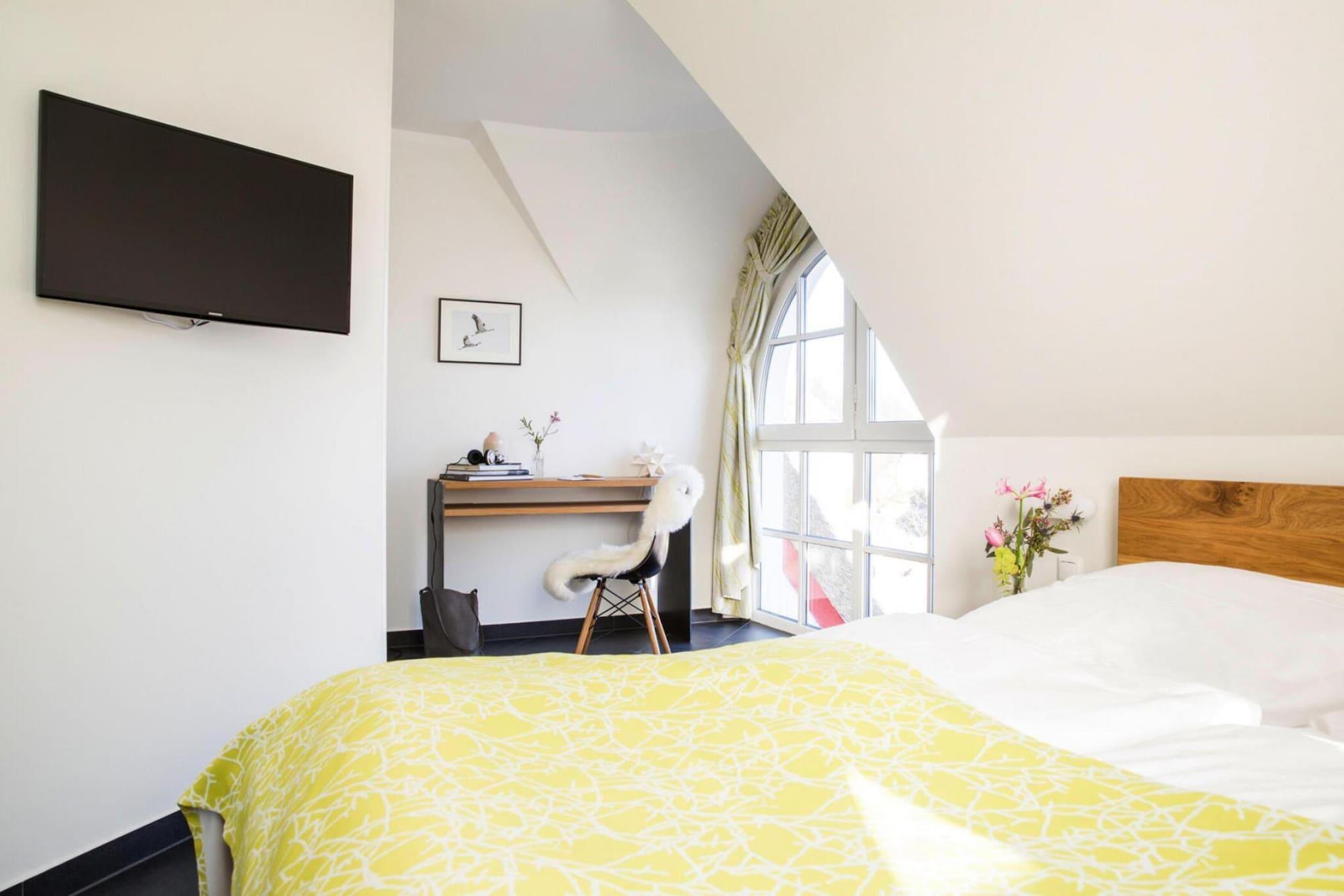 Med naturlig badeplads på Bodden: Nybygget luksushus med stråtag i rolig, malerisk beliggenhed. Sauna og pejs til hyggelige timer, Wi-Fi og satellit-tv med Sky for variation - her mangler virkelig intet. Vil du bytte badepladsen på Bodden ud med den livlige og farverige travlhed på stranden ved Østersøen, er det bare at køre til Zingst, som kun ligger 17 kilometer væk. Derudover kan du tage på skønne cykelture for at opdage de små, idylliske landsbyer og de smukke landskaber omkring Bodden. Kommunerne Fuhlendorf og Bodstedt er idyllisk beliggende på Boddens sydkyst. I den varmere årstid sejler passagerskibe dagligt fra Bodstedt til Darß-halvøen i Born og videre gennem Neuendorfer Bülten til Ahrenshoop-Althagen. Højdepunkter: Forbrugsbaserede energiomkostninger, sengelinned, håndklæder, slutrengøringWLAN-aktiviteter i nærheden: Nabokommunen Bodstedt med sin traditionelle havn er kendt for Zeesen-både, der bor her. Nogle ejere af Zeesenboote tilbyder endda forlystelser, og sådan en mulighed må man ikke gå glip af!Den første weekend i september hvert år siden 1965 starter den store Bodstedt Zeesenbootregatta - et populært motiv, især for amatørfotografer.