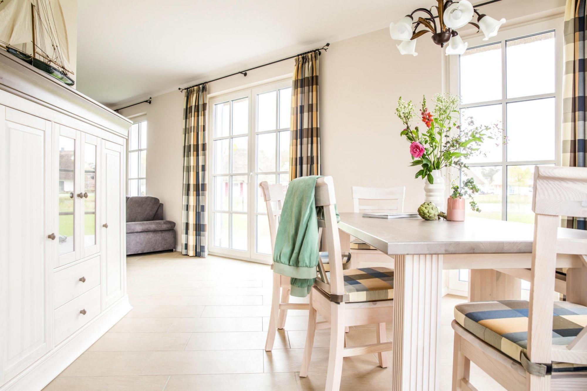 Med et naturligt badeområde ved bugten: Nybygget luksus stråtækt hus i en rolig, malerisk beliggenhed. Sauna og pejs til hyggelige timer, WiFi og satellit-tv med Sky for variation - her mangler intet. Hvis du vil veksle badeområdet på Bodden med den livlige og farverige travlhed på stranden ved Østersøen, skal du blot tage din bil til Zingst, som kun ligger 17 kilometer væk. Derudover kan du tage på skønne cykelture for at opdage de små idylliske landsbyer og de smukke landskaber omkring bugten. Kommunerne Fuhlendorf og Bodstedt ligger meget idylliske på Boddens sydkyst. I årets varmere måneder sejler passagerskibe fra Bodstedt til Darß-halvøen til Born og videre gennem Neuendorfer Bülten til Ahrenshoop-Althagen. Detaljer: Forbrugsbaserede energiomkostninger, sengelinned, håndklæder, slutrengøring, WiFi Aktiviteter i nærheden: Nabokommunen Bodstedt med sin traditionelle havn er kendt for Zeesen-bådene, som ligger her. Nogle ejere af Zeesenbooten tilbyder endda en tur, og sådan en mulighed må man ikke gå glip af!Siden 1965 starter den store Bodstedt Zeesenbootregatta hvert år den første weekend i september - et populært motiv især for amatørfotografer Ikke egnet til personer med nedsat mobilitet