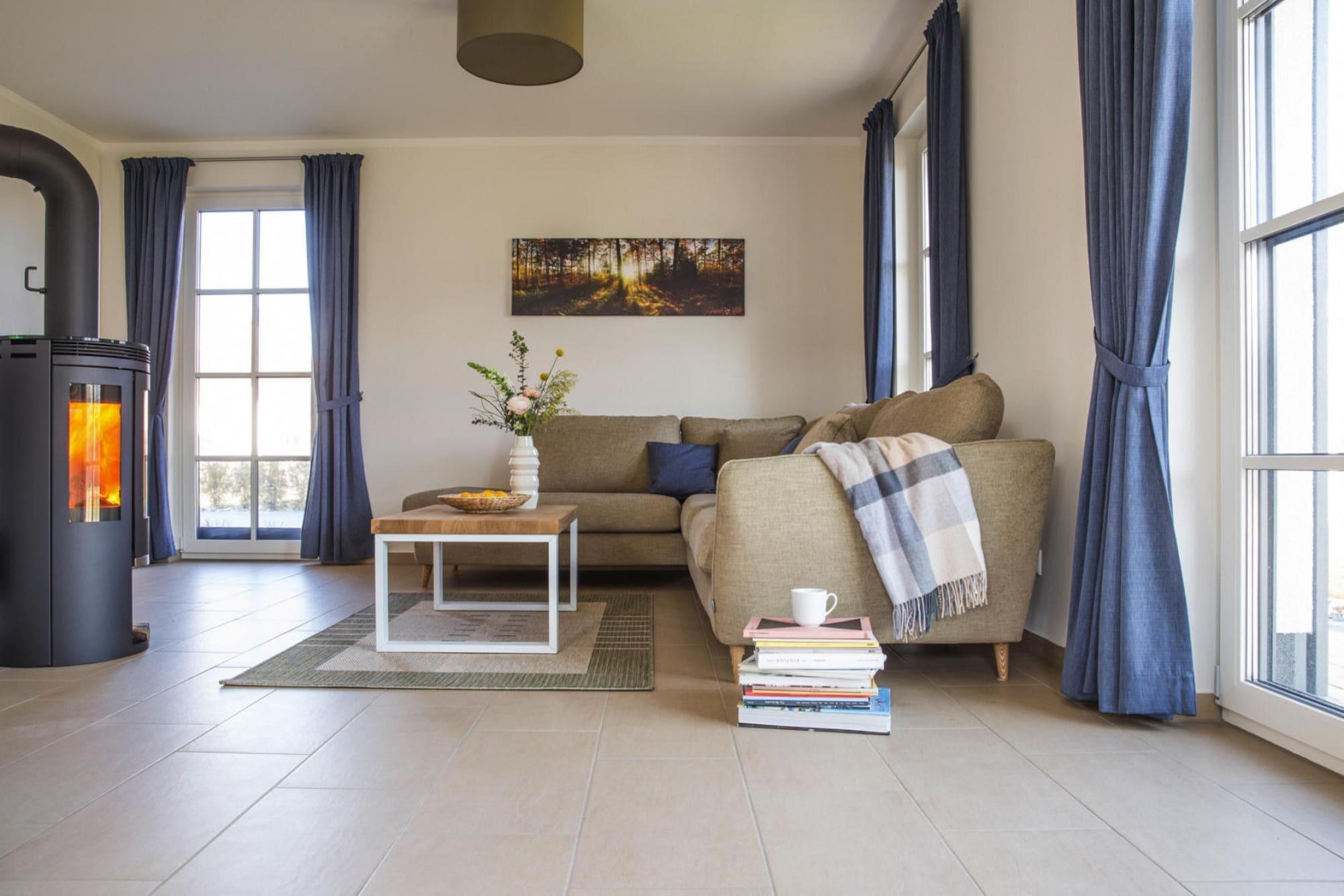 Med et naturligt badeområde ved bugten: Nybygget luksus stråtækt hus i en rolig, malerisk beliggenhed. Sauna og pejs til hyggelige timer, WiFi og satellit-tv med Sky for variation - her mangler intet. Hvis du vil veksle badeområdet på Bodden med den livlige og farverige travlhed på stranden ved Østersøen, skal du blot tage din bil til Zingst, som kun ligger 17 kilometer væk. Derudover kan du tage på skønne cykelture for at opdage de små idylliske landsbyer og de smukke landskaber omkring bugten. Kommunerne Fuhlendorf og Bodstedt ligger meget idylliske på Boddens sydkyst. I årets varmere måneder sejler passagerskibe fra Bodstedt til Darß-halvøen til Born og videre gennem Neuendorfer Bülten til Ahrenshoop-Althagen. Detaljer: Forbrugsbaserede energiomkostninger, sengelinned, håndklæder, slutrengøring, WiFi Aktiviteter i nærheden: Nabokommunen Bodstedt med sin traditionelle havn er kendt for Zeesen-bådene, som ligger her. Nogle ejere af Zeesenbooten tilbyder endda en tur, og sådan en mulighed må man ikke gå glip af!Siden 1965 starter den store Bodstedt Zeesenbootregatta hvert år den første weekend i september - et populært motiv især for amatørfotografer Ikke egnet til personer med nedsat mobilitet