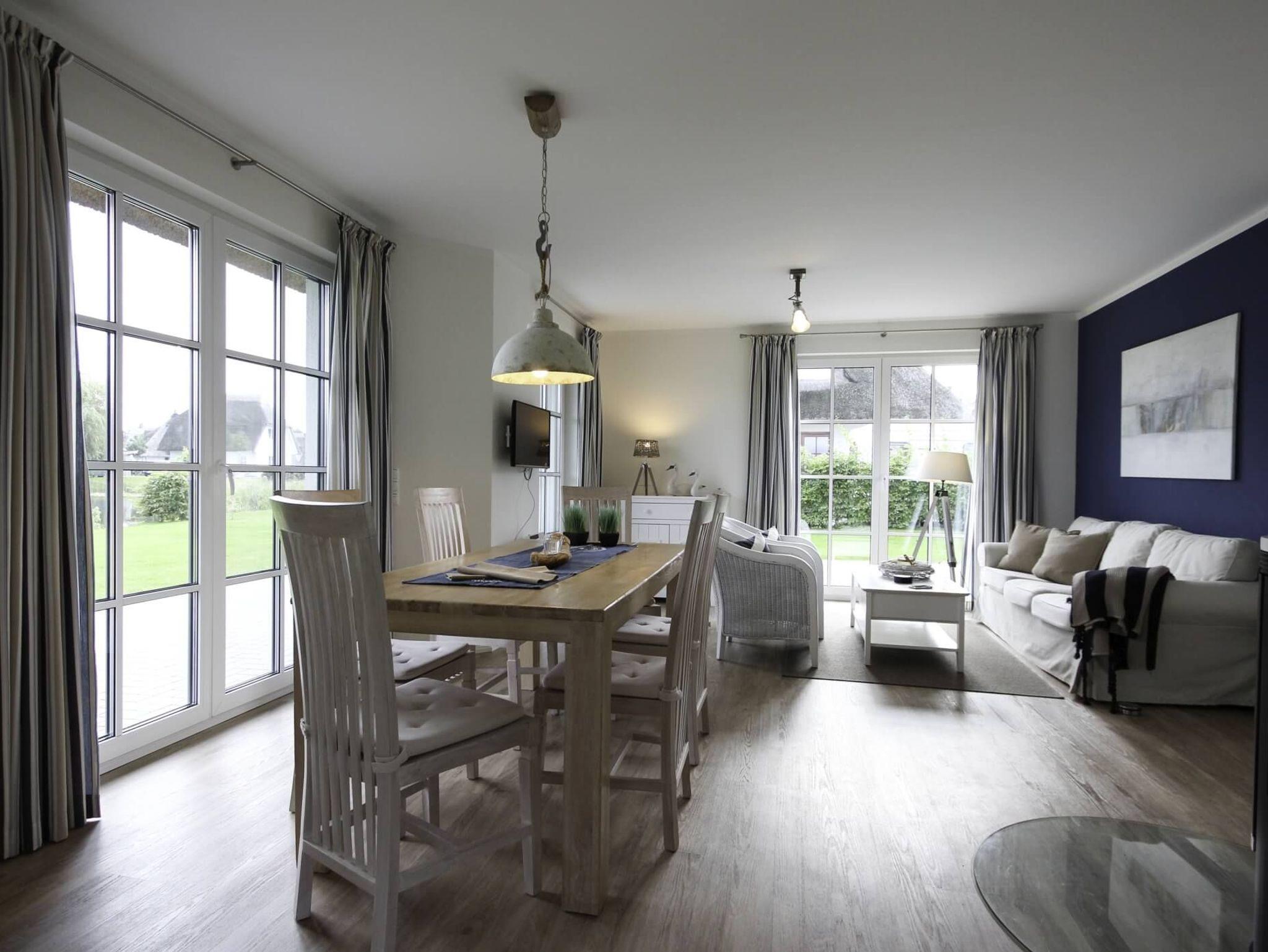 Der großzügige Wohn- und Essbereich mit direktem Zugang zur Terrasse bildet das Herzstück des Hauses. Die moderne, vollständig ausgestattete Küche mit Geschirrspüler ermöglicht entspanntes Kochen im Urlaub. Ein besonderes Highlight ist die hauseigene Sauna ? perfekt für erholsame Stunden nach langen Spaziergängen entlang des Boddens oder einem Tag am Ostseestrand.