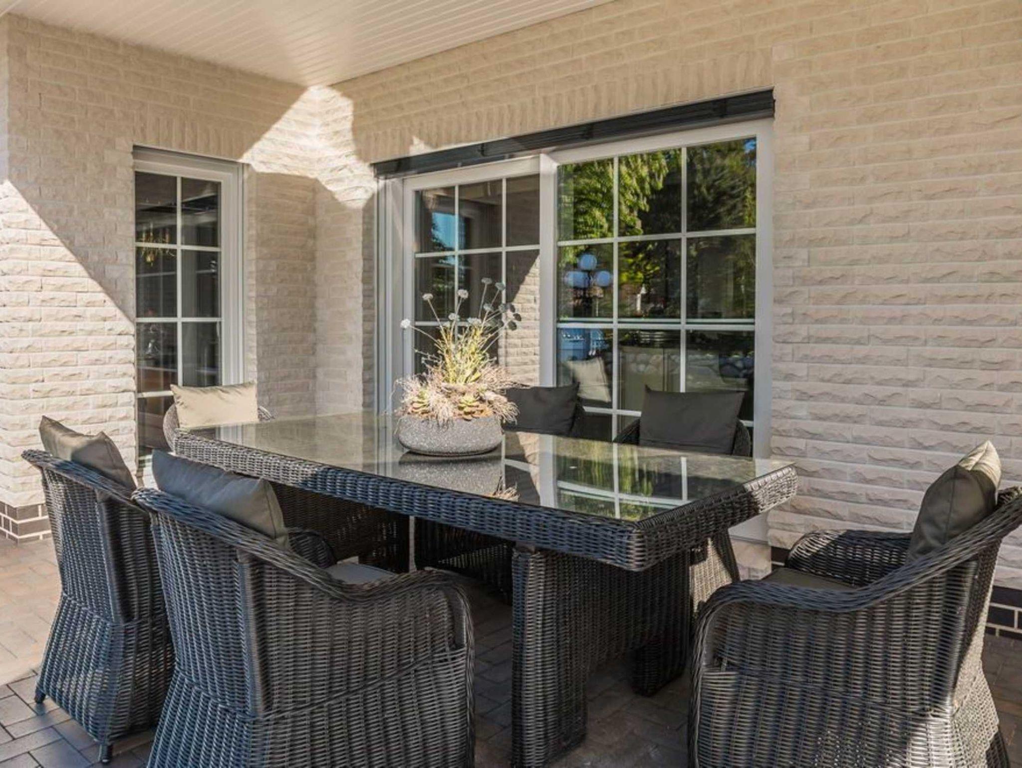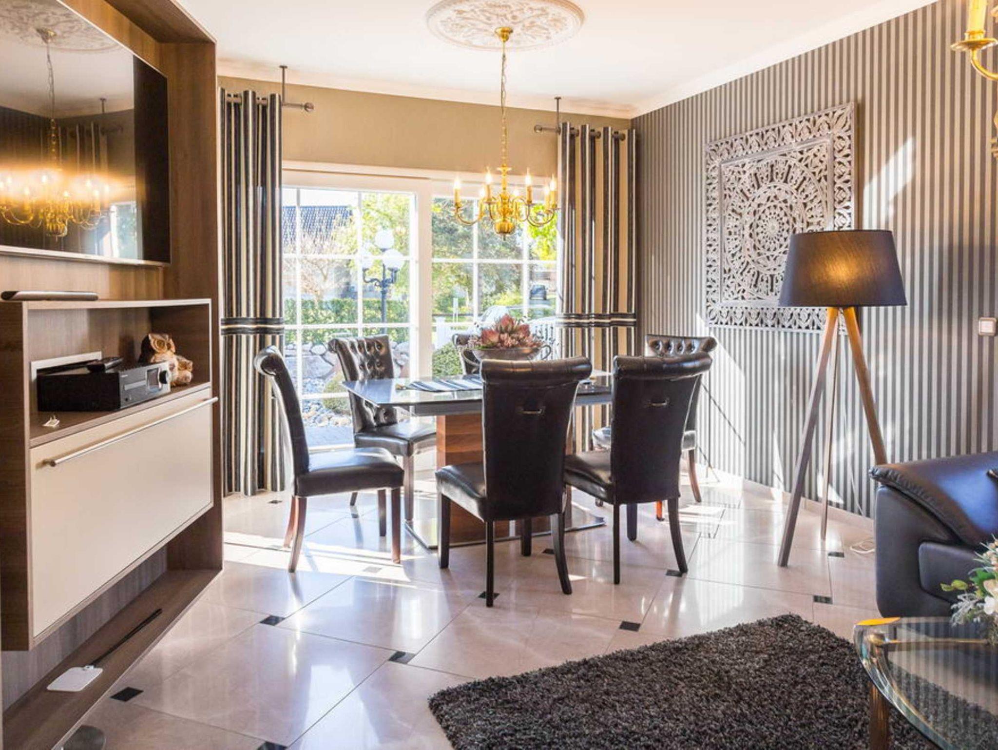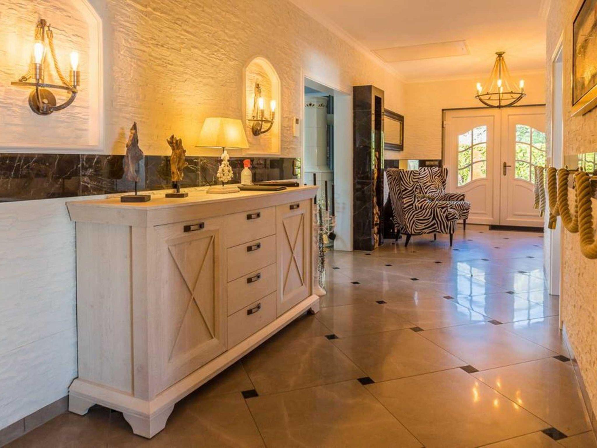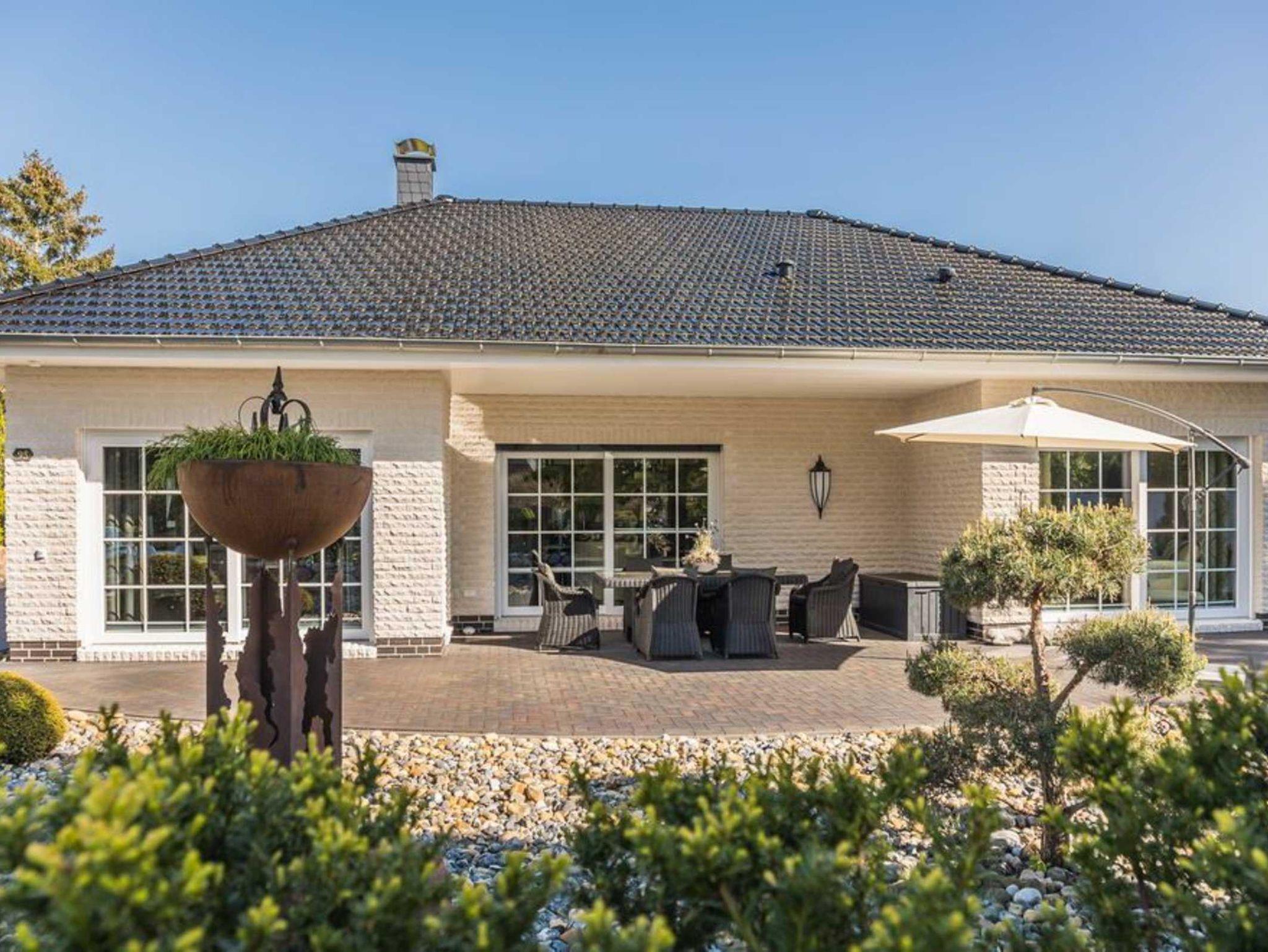 Wir bieten Ihnen (ausreichend für ca. 5 Personen) einen Komfort, der zum Wohlfühlen und Relaxen einlädt. Neben dem stilvoll, klassischen Charme verströmden Wohnraum (an kühleren Abenden durch die Wärme eines Kamins vollendet) mit offenem Küchenbereich, bieten wir Ihnen zwei Schlafzimmer mit der Option zur Aufbettung. An die kleinen Urlauber ist mit Kinderstuhl und Reisebett gedacht. Ein großzügig gestaltetes, lichtdurchflutetes Badezimmer mit - auch hier hochwertiger Ausstattung - Bad und Duschkabine ästhetisch integriert - sowie ein Gäste-WC in edlem Design erwarten Sie. Die überdachte Terrasse lässt den Betrachter durch einen romantischen Sonnenuntergang unvergessliche Momente erleben und die reizvolle Idylle unserer Region erahnen.