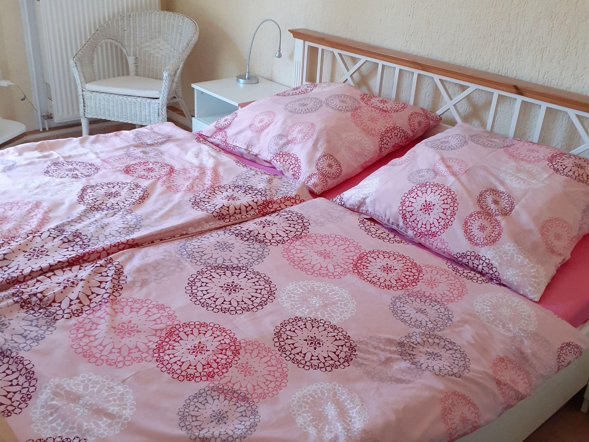 In ruhiger Lage in Fuhlendorf, nur ca. 300 m von einem kleinen Naturstrand am Bodden und ca. 800 vom Nachbarort Bodstedt mit Hafen, Restaurants sowie Badestrand entfernt, befindet sich auf einem 450 qm großen separaten Erholungsgrundstück das Ferienhaus für bis zu 4 Personen. Das etwa 74qm große, geschmackvoll eingerichtete Nichtraucherhaus wird zentral beheizt und verfügt über Insektenschutz an den Fenstern. Es ist ausgestattet mit einem separaten Wohnraum (Polstermöbel, Flachbild-TV, Radio), zwei Schlafzimmern (1 x Doppelbett, 1 x 2 Einzelbetten im Obergeschoss), einem offenen Wohnbereich (Sitzecke und Flachbild-TV), einer Küche (E-Kochfeld, Kühlschrank, Spülmaschine, , Mini-Backofen, diverse Küchengeräte) sowie einem Bad (Dusche/WC und Fön) und einem Gäste WC. Zusätzlich stehen eine möblierte Terrasse, Sonnenliegen, Sauna (gegen Gebühr), Parkplatz und Grill zur Verfügung. Das Rauchen ist nur im Freien erlaubt. Im Gesamtpreis sind die Wasser-und Energiekosten enthalten. Bettwäsche kann wahlweise mitgebracht oder mit gebucht werden (20,00 EUR/Pers.).