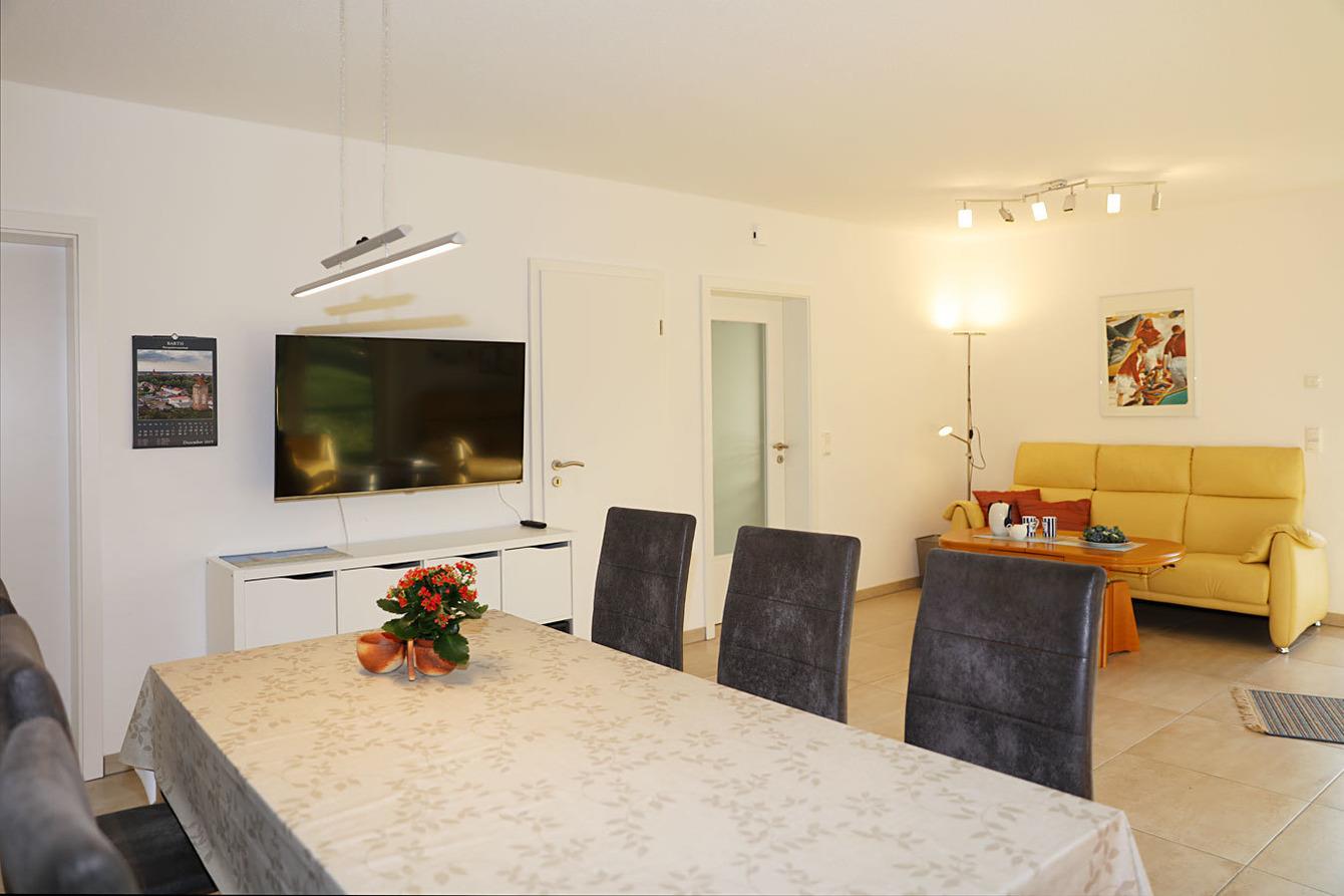 Fernseher mit Sat-Anschluss, DVD, Radio, Informationsmaterial sowie eine Auswahl von Büchern und Spielen haben wir für Sie zusammengestellt. In der Küche sind Herd, Backofen, Mikrowelle, Kühlschrank mit Gefrierfach, Dunstabzugshaube, Geschirrspüler und Geschirr für mindestens 8 Personen vorhanden.