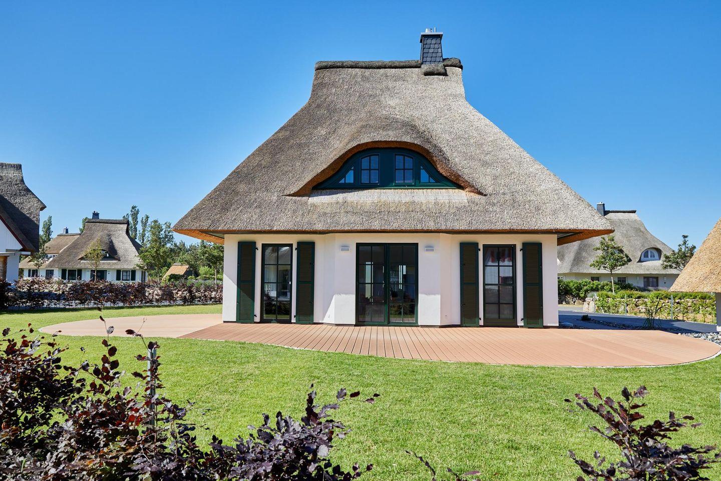 Dieses modern ausgestattete Ferienhaus mit traditionellem Reetdach, ortstypischer Feldsteineinfriedung und 676 m2 großem, eingezäuntem Grundstück liegt in einer neuen Ferienhausanlage. Es bietet viel Platz für vier Feriengäste (zwei Schlafzimmer mit Doppelbett und TV) und verfügt über einen großzügigen Wohn-Essbereich, ein einladendes Wannen-/Duschbad mit WC und Sauna im OG sowie ein Gäste-WC im EG.