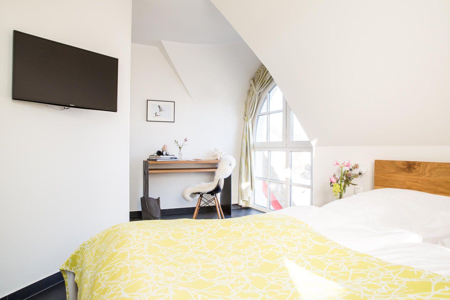 Sat-TV mit Sky in einem Schlafzimmer