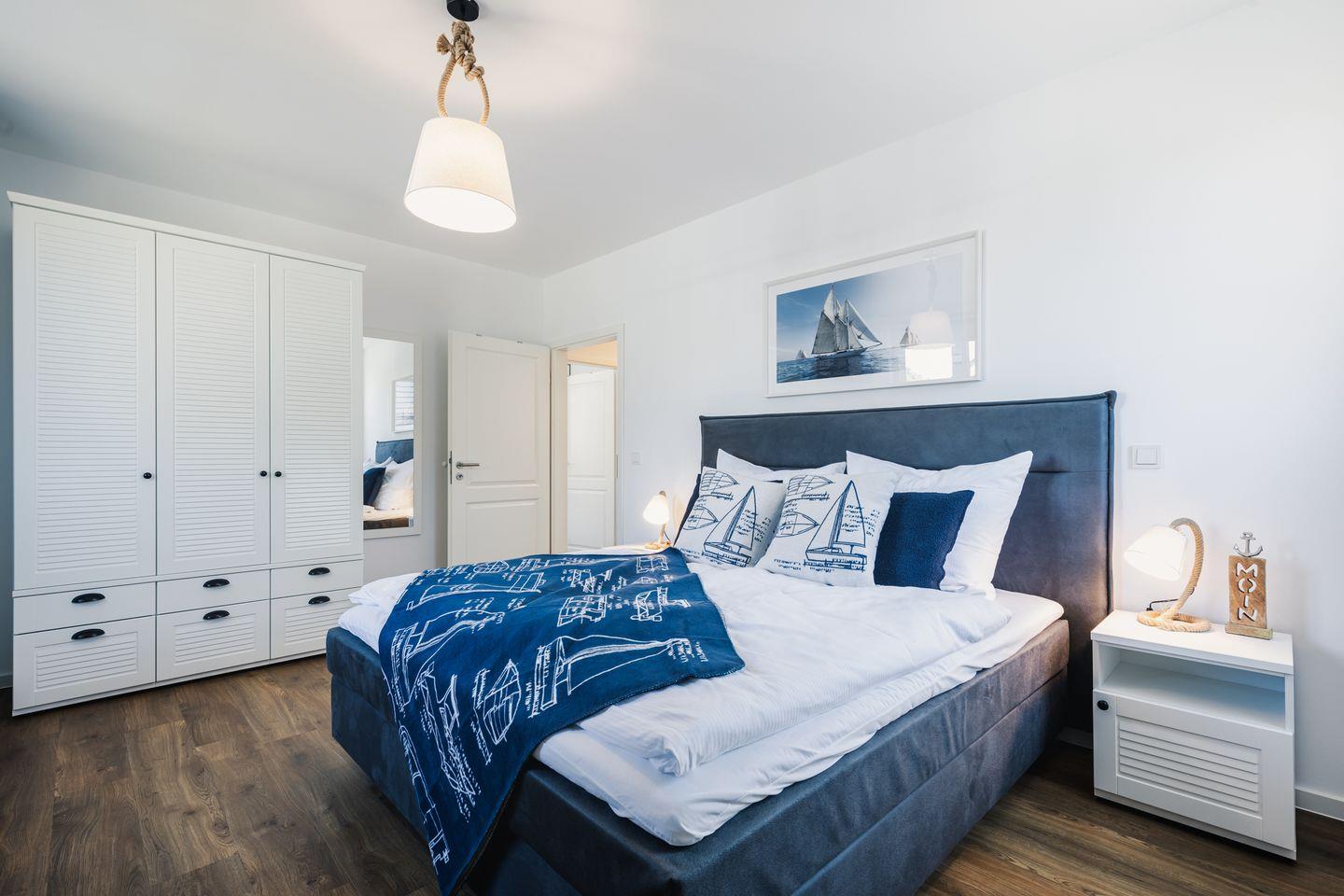 Die beiden Schlafzimmer bieten Ihnen jeweils ein modernes Doppelbett (1,80m x 2,00m), auf welchem Sie Erholung und Entspannung finden. Ein Kinderbett sowie ein Hochstuhl können auf Anfrage hinzugebucht werden.