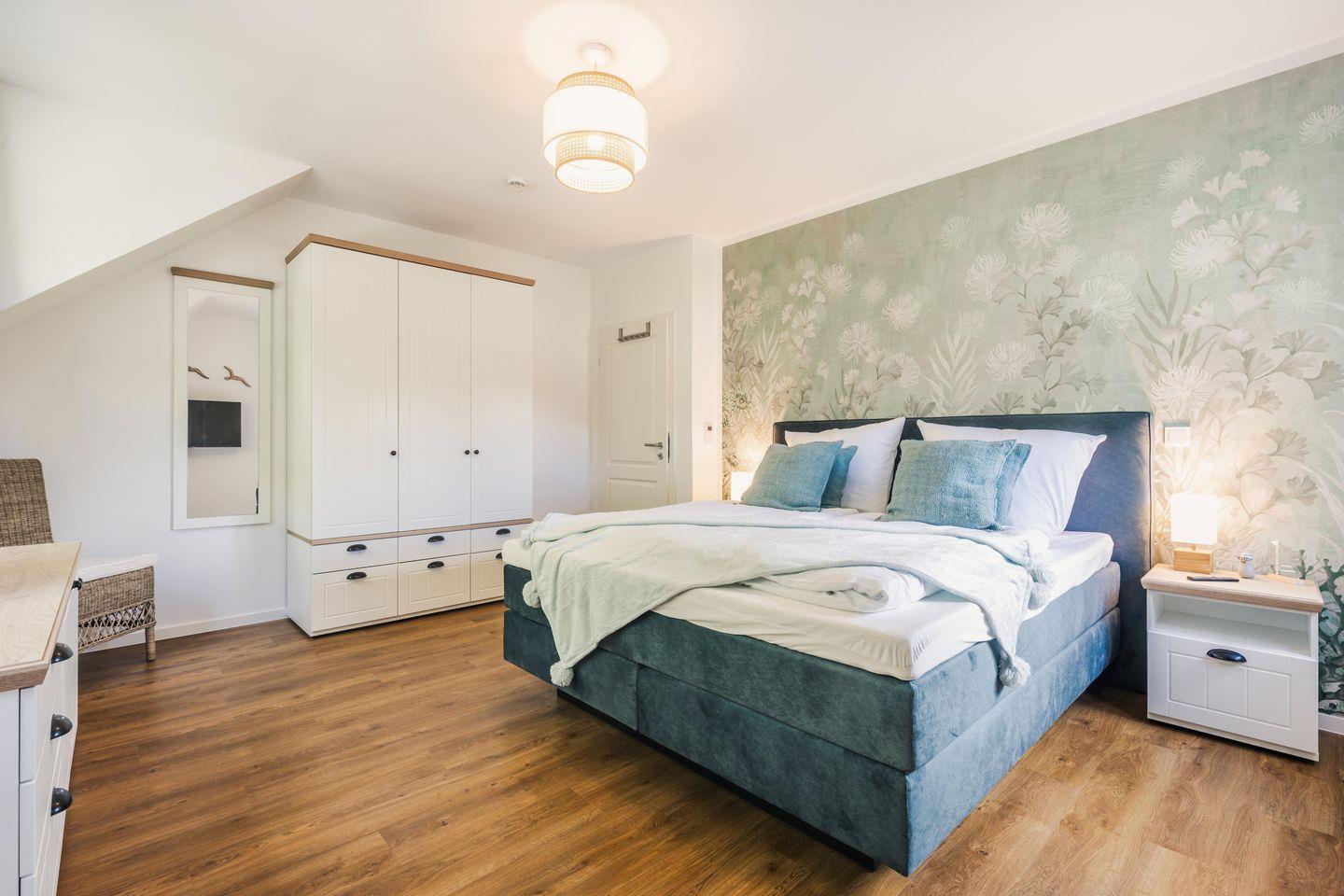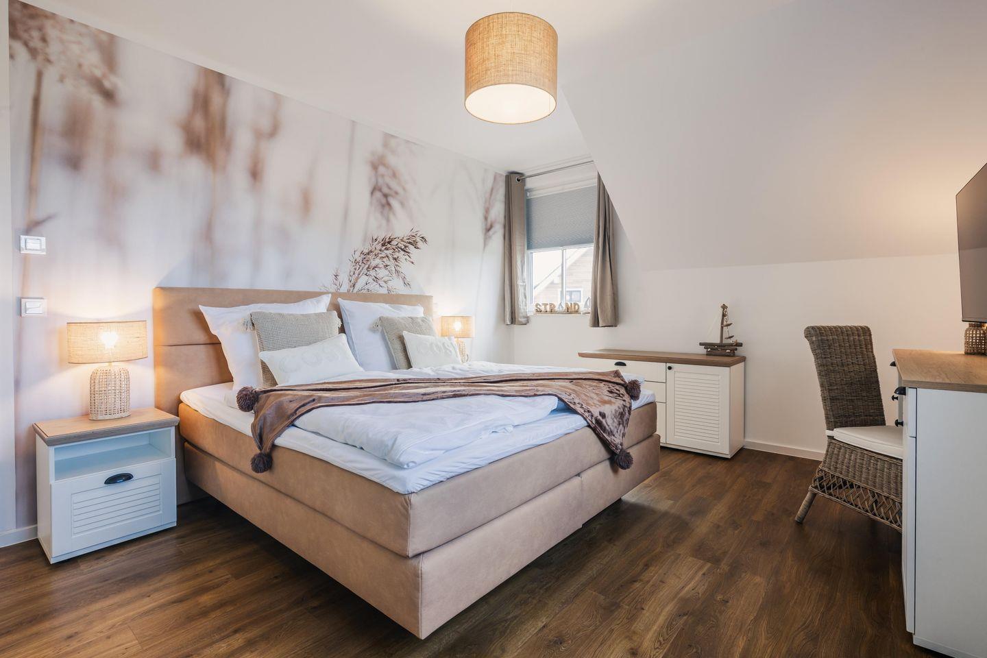 Die beiden Schlafzimmer bieten Ihnen jeweils ein modernes Doppelbett (1,80m x 2,00m), auf welchem Sie Erholung und Entspannung finden. Ein Kinderbett sowie ein Hochstuhl können auf Anfrage hinzugebucht werden.