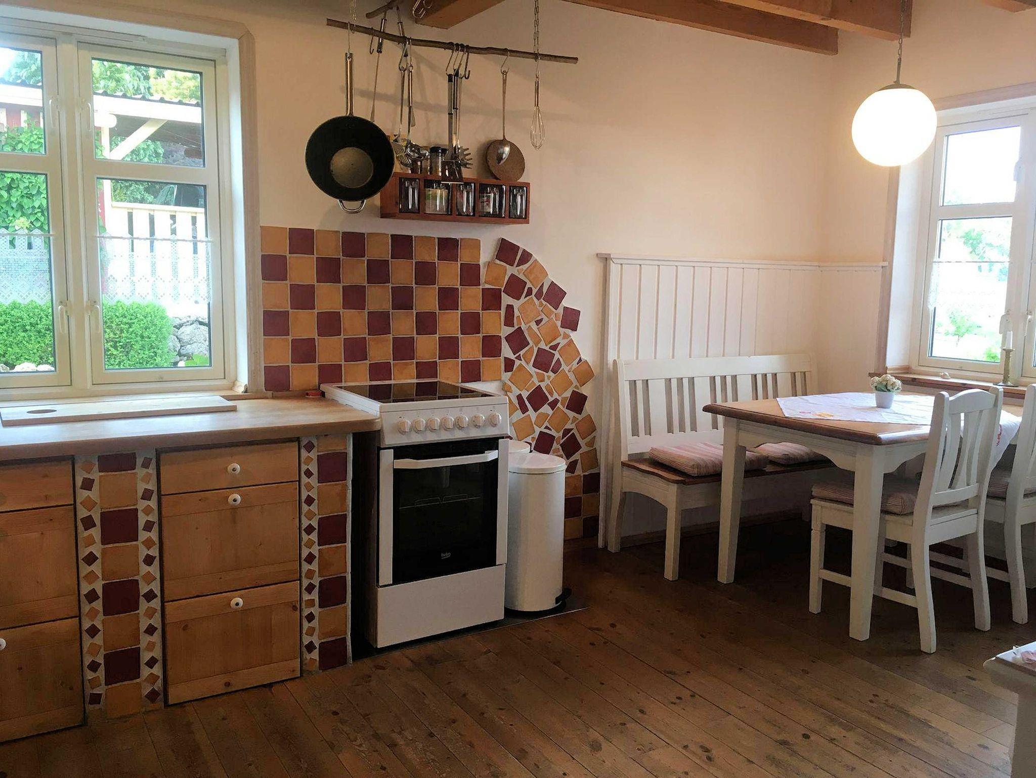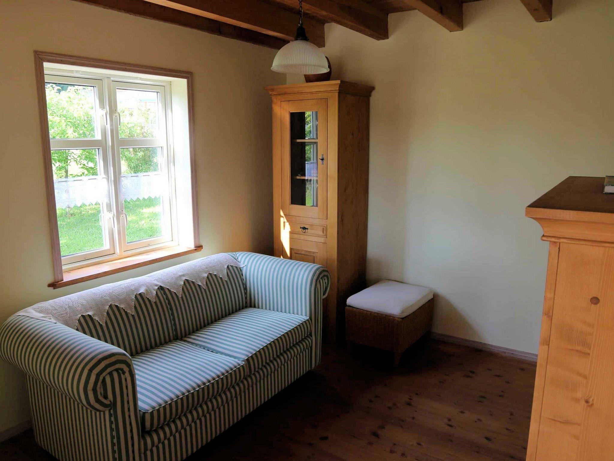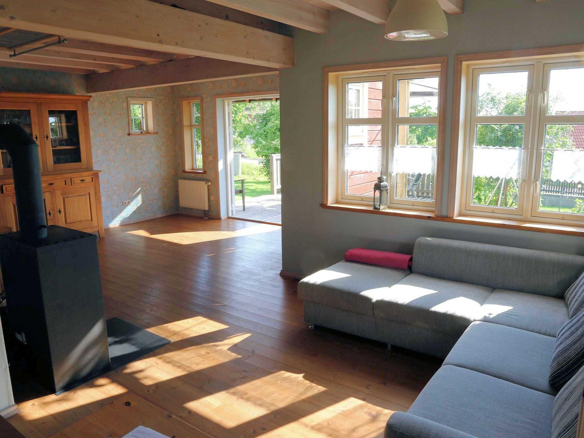 Im Haus finden Sie viele Annehmlichkeiten. Das Wohnzimmer ist mit einem gemütlichen Sitz- bzw Liegesofa ausgestattet. Im Holzofen können Sie durch die Glasscheibe das wärmende Holzfeuer beobachten. Im Neberaum finden sie eine weitere Couch und ein TV-Gerät. Über eine Satelittenantenne wird eine breite Programmvielfalt empfangen. Vom Wohnzimmer aus erreichen sie die Terasse mit Gartenmöbelgarnitur für sechs Personen.