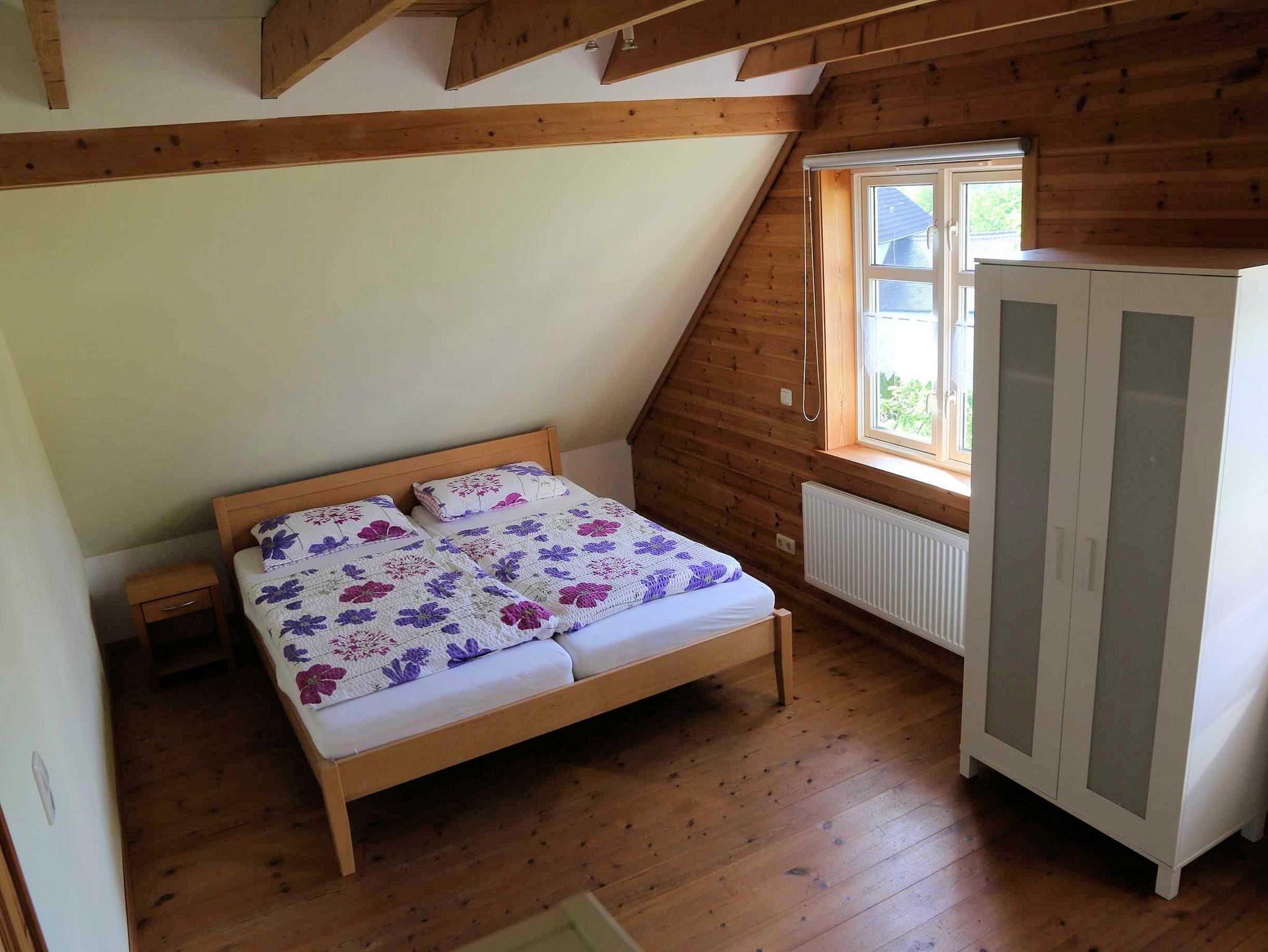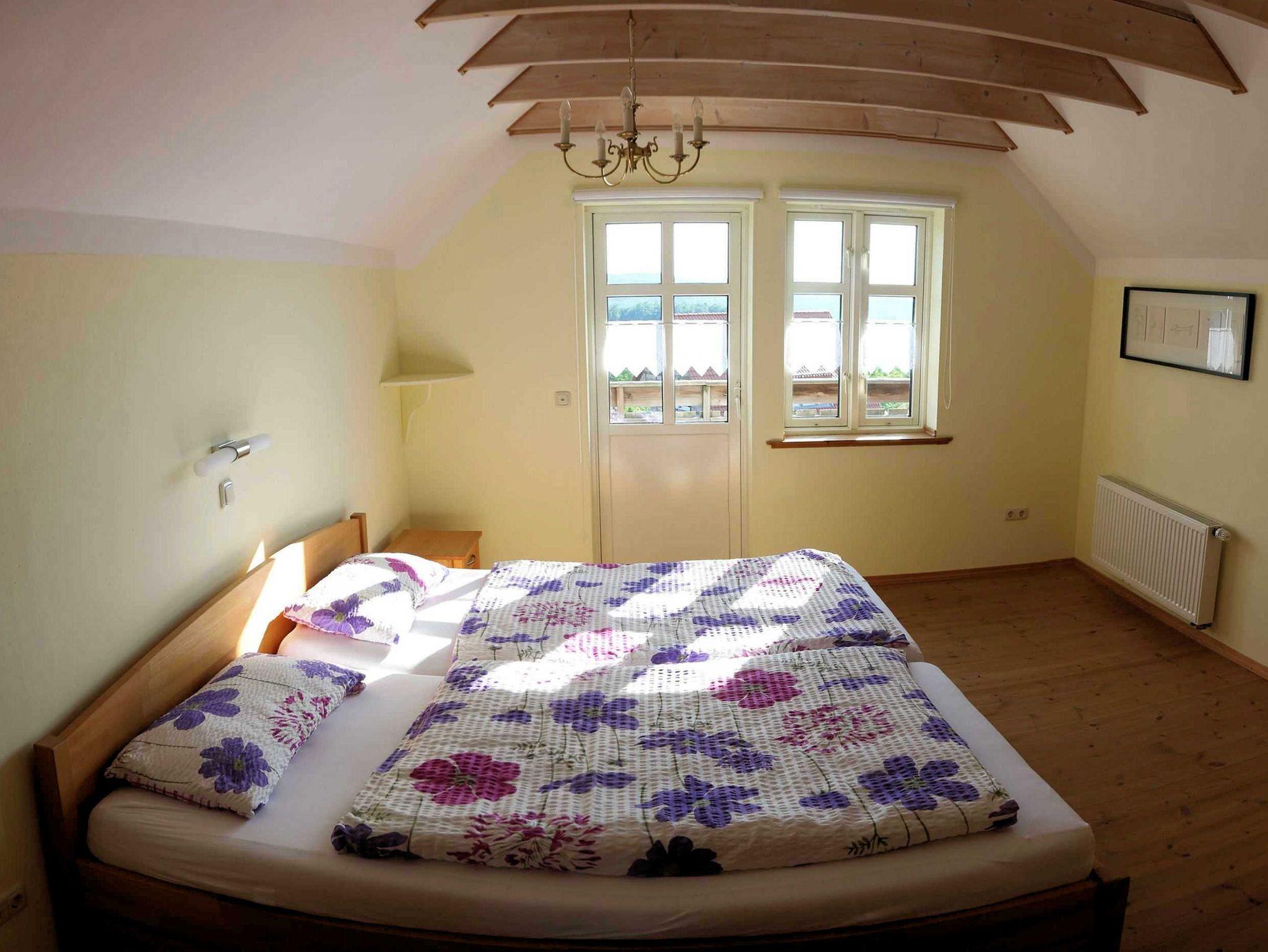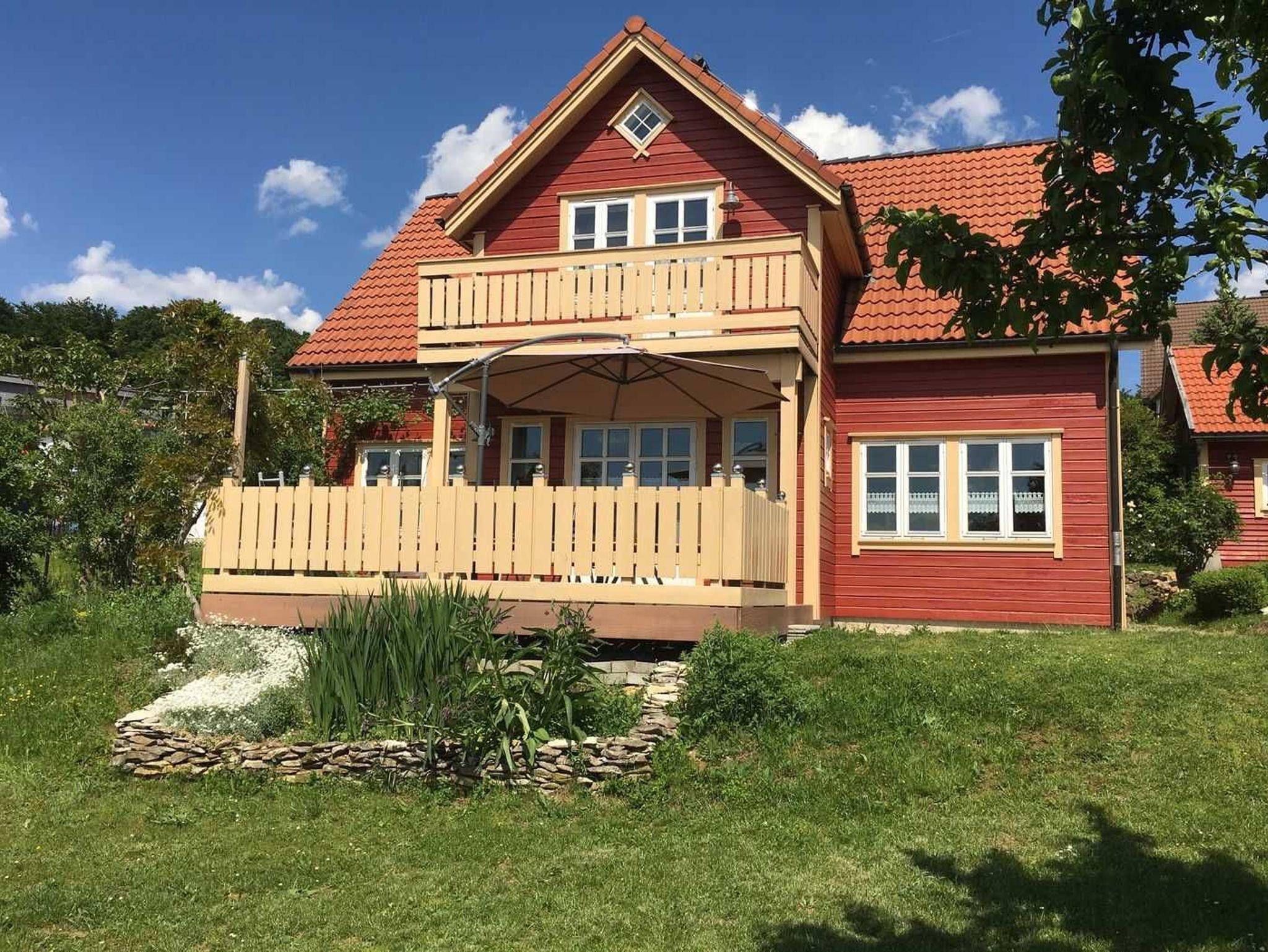 Sie können ihre Ferien in einem freistehenden Holzhaus verbringen. Das Ihnen zur Verfügung gestellt Grundstück beträgt 1000 Quadratmeter. Der Garten bietet eine Liegewiese, Platz für Spiele und zum Grillen. Die Terasse ist nach Süden ausgerichtet und ermöglicht einen weiten Blick ins untere Wiesenttal in Richtung Forchheim. Das Haus bietet Platz für sechs Personen zu jeder Jahreszeit.