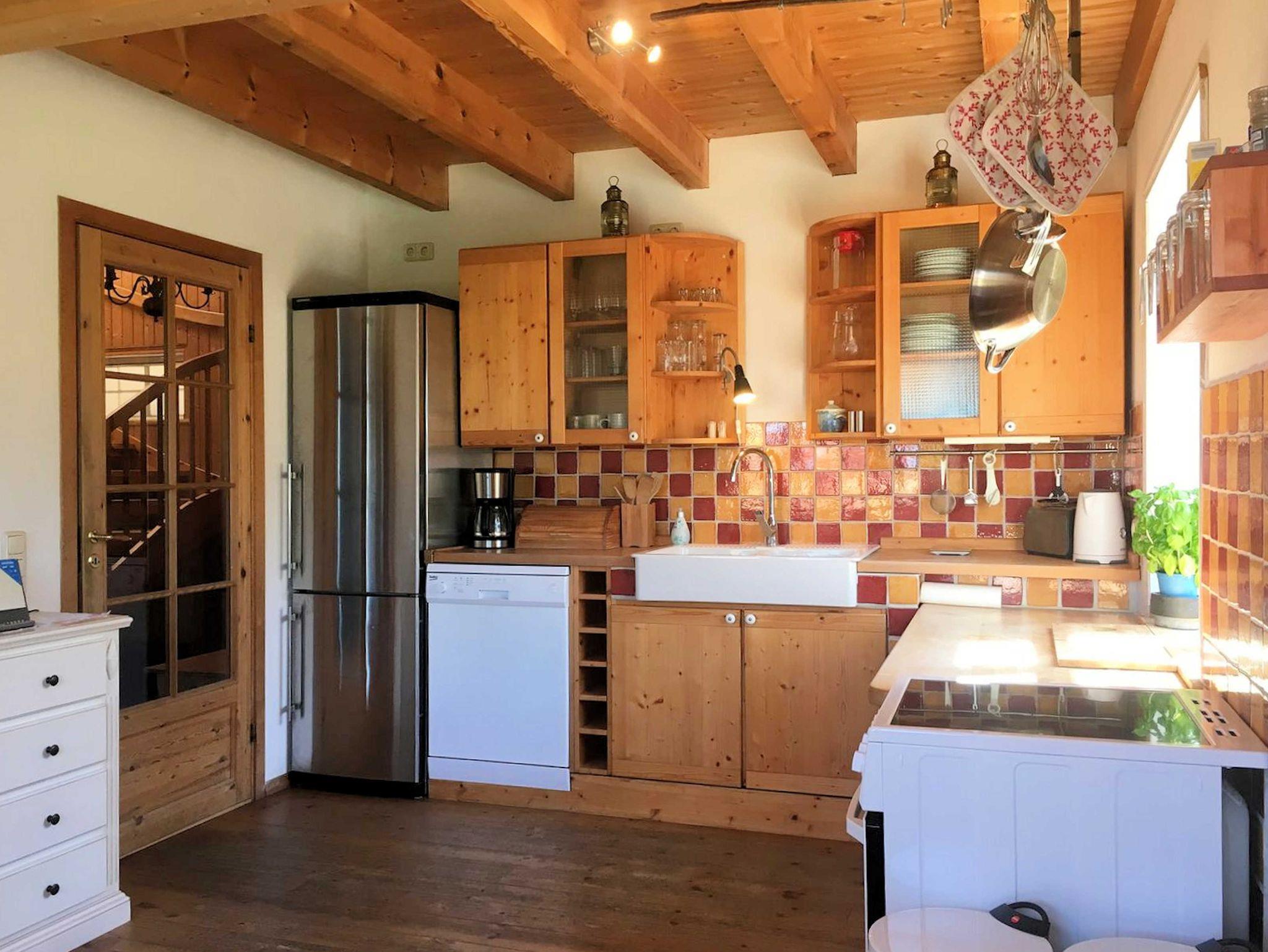 Die Küche ist mit Geschirrspüler, Toaster, Kaffeemaschine, Kühl- und Gefrierschrank, Radio mit mp3, SD-karte und USB Anschluß usw. ausgestattet. Im Erdgeschoss befindet sich auch noch ein Gäste-WC. Im Versorgungsraum ist die Waschmaschine untergebracht.