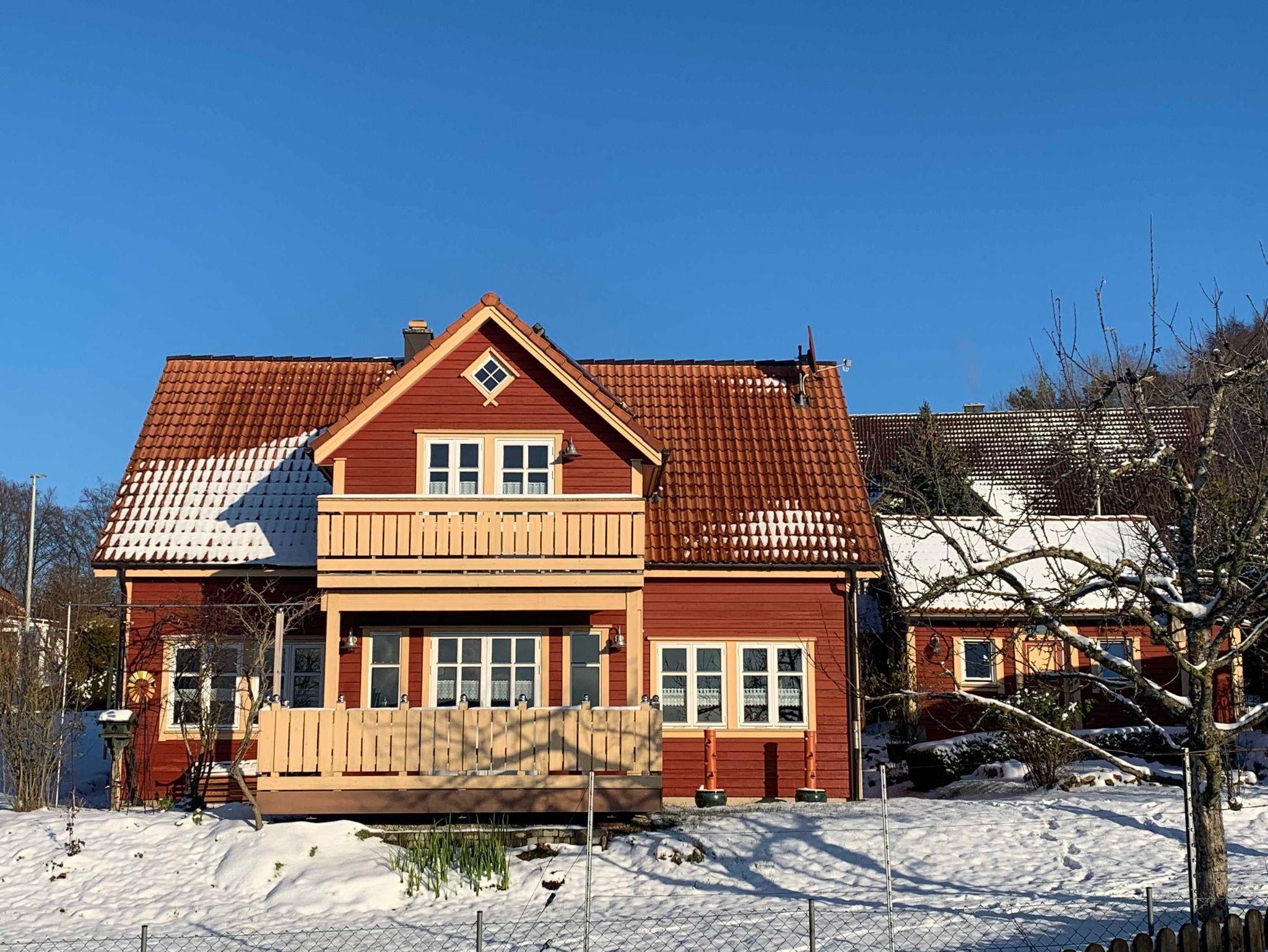Freistehendes Holzferienhaus für bis zu 6 Gäste mit Garten, Terasse, Küche, Wohnzimmer, Gäste WC, 3 Schlafräume, Bad, Balkon und drei Parkplätzen.