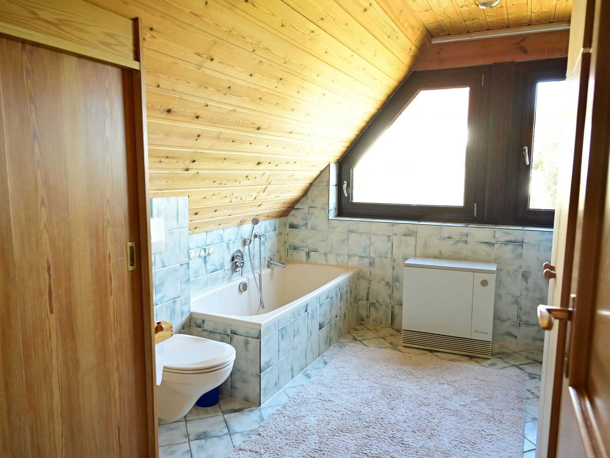 Im 1. Stock befinden sich 4 Schlafzimmer (1 Zimmer mit Doppelbett, 2 Zimmer mit je einem Einzelbett, 1 Zimmer mit einem Doppelbett und einem Einzelbett), eine gemütliche Leseecke und ein Bad mit WC, Dusche und Badewanne und ein separates WC.