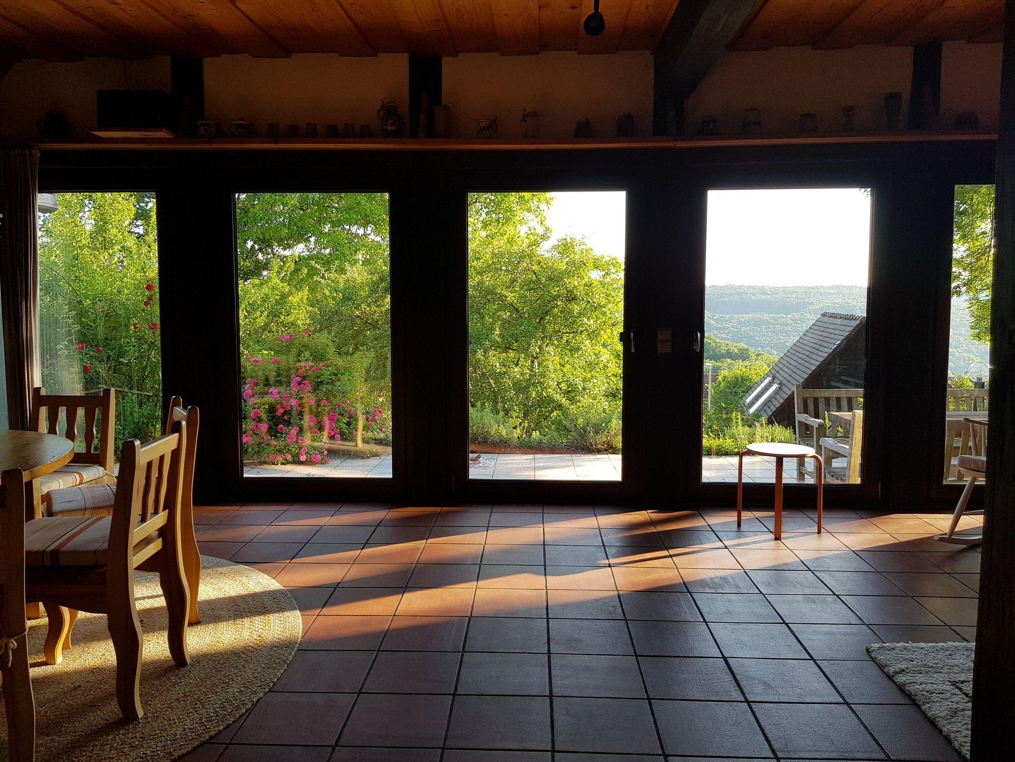Großes, freistehendes Fachwerk-Ferienhaus mit weitläufigem Garten, Sonnenterrasse, direkt am Waldrand mit herrlichem Panorama-Fernblick