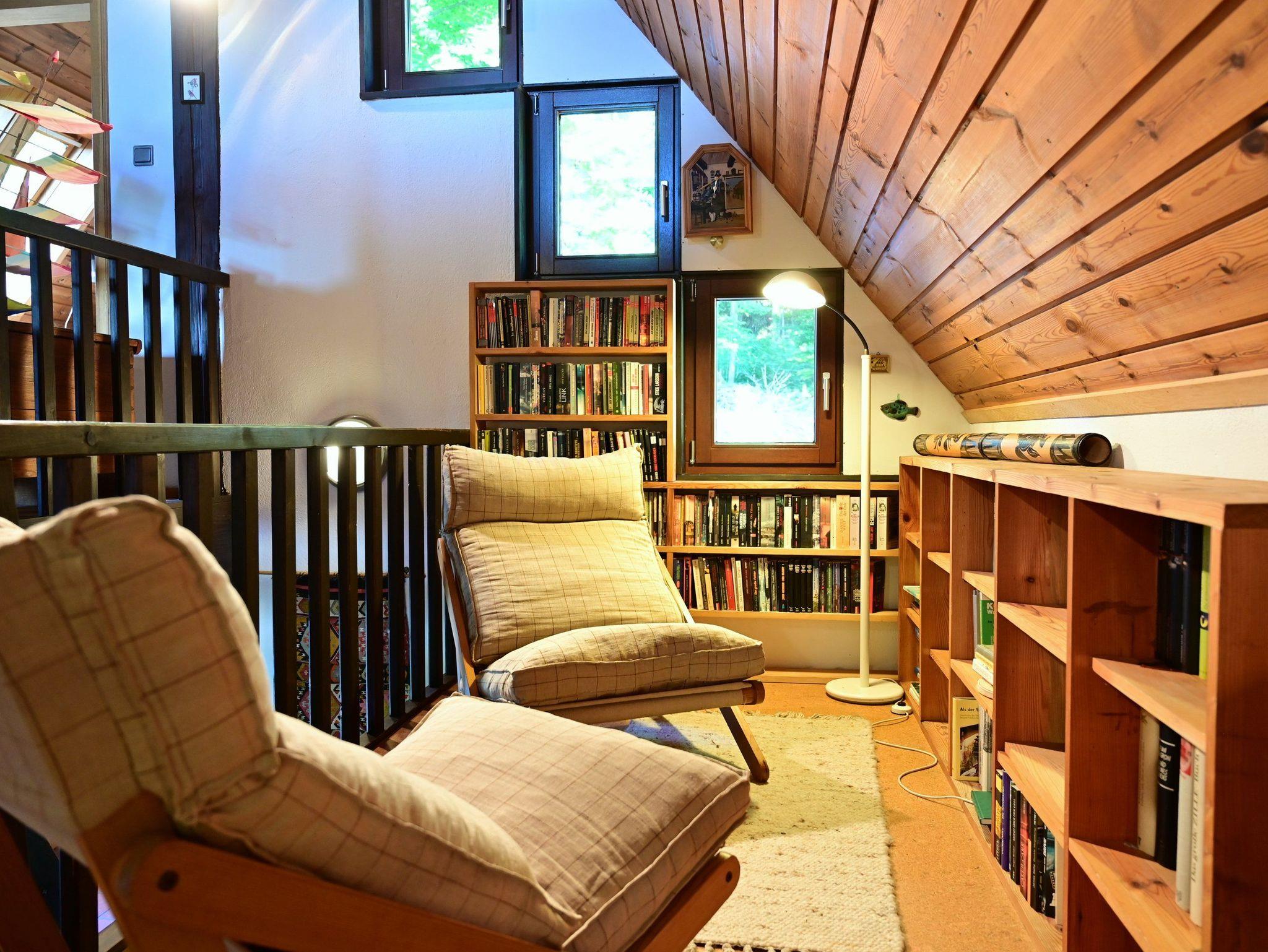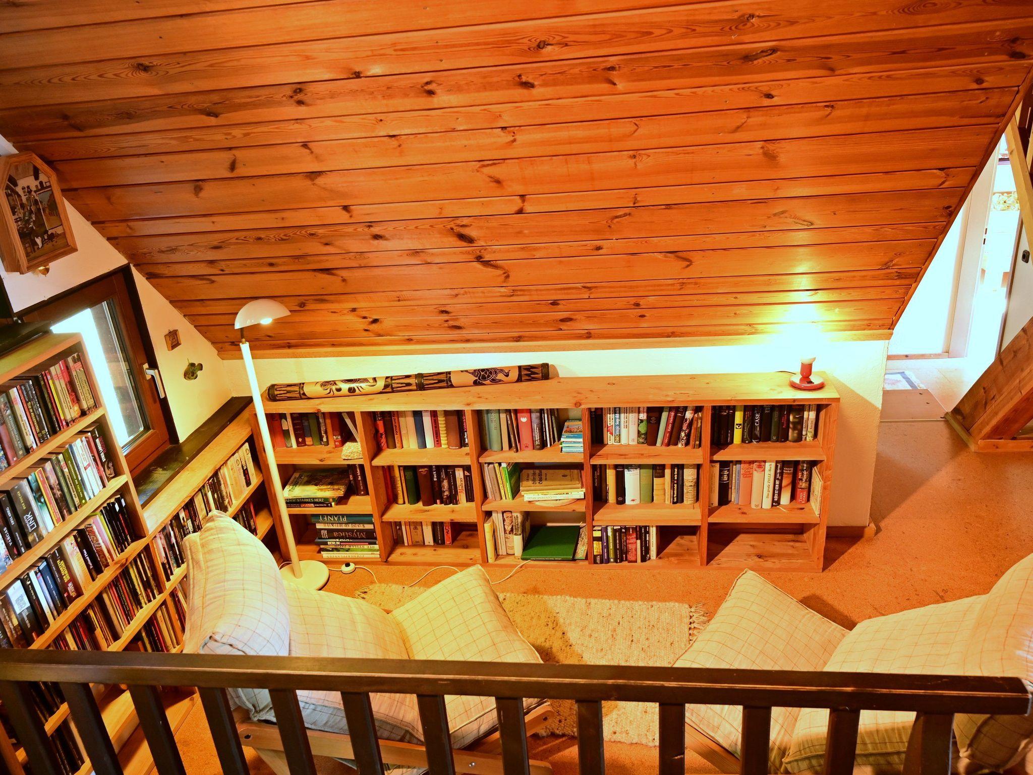 Der auf zwei Ebenen angelegte Wohn-Essbereich, sowie eine Leseecke im Obergeschoss laden zum gemeinsamen verweilen ein.