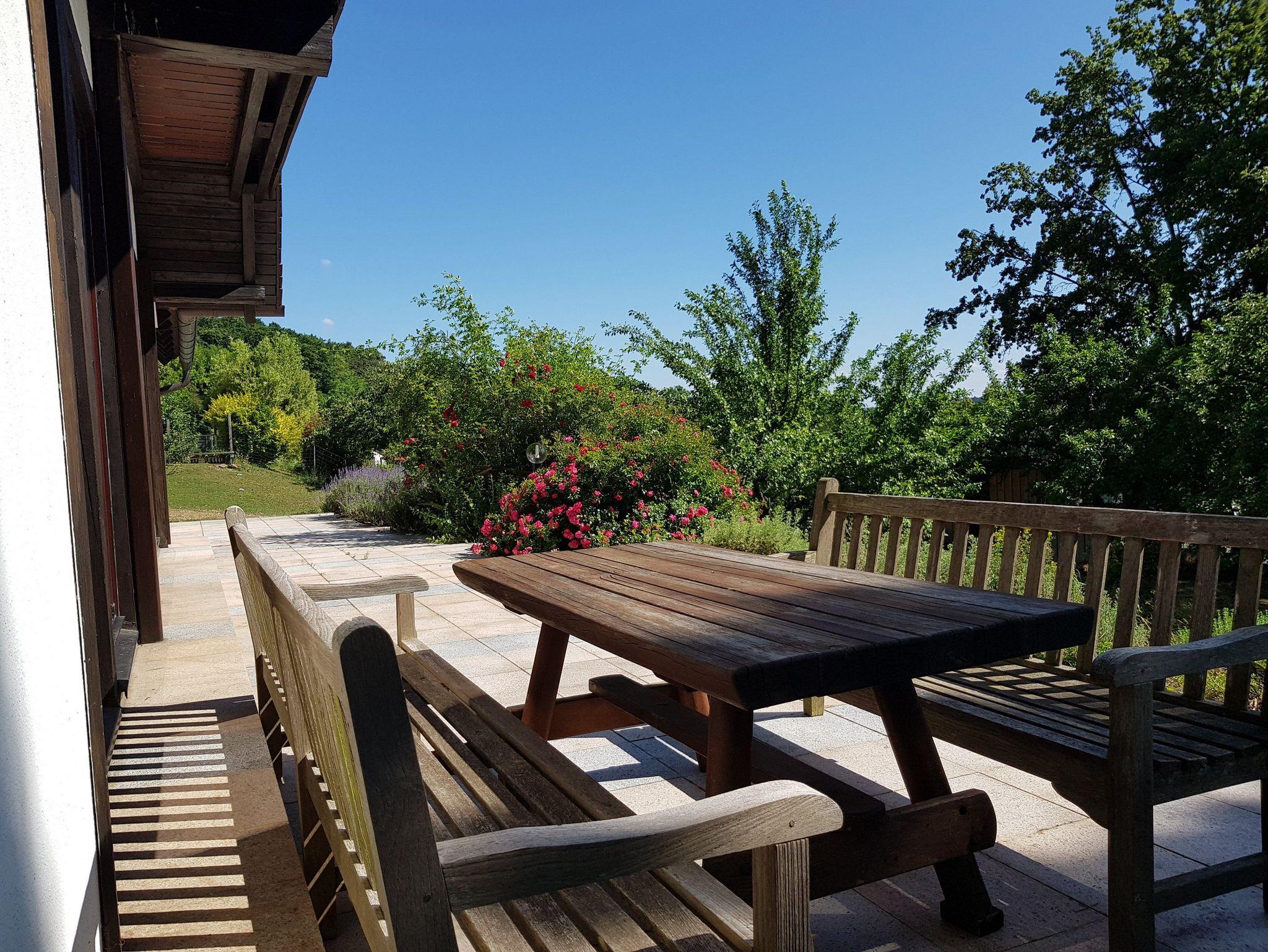 Das nach Süden ausgerichtete Haus bietet großzügigen Wohnraum für bis zu 16 Personen (weitere Personen auf Anfrage möglich) und ist ringsum umgeben von mehr als 3.000 qm Garten, der am oberen Ende direkt in den Wald übergeht.