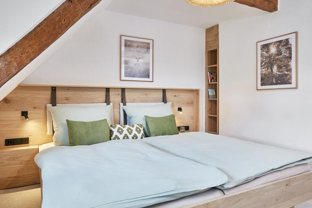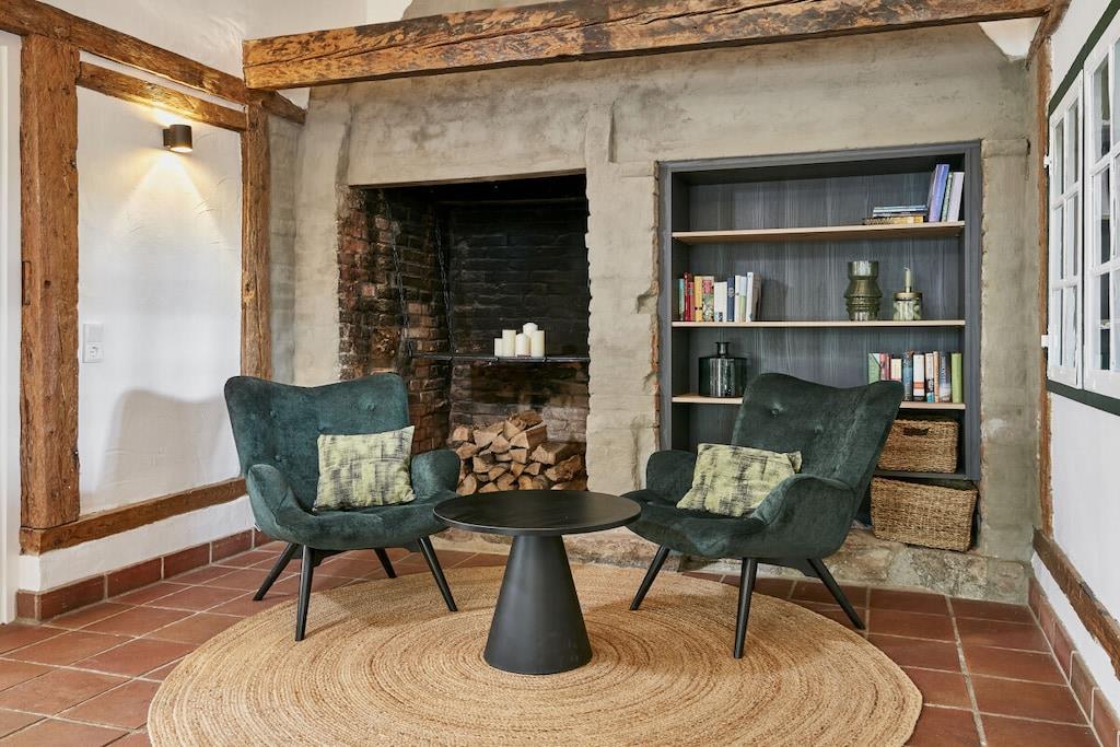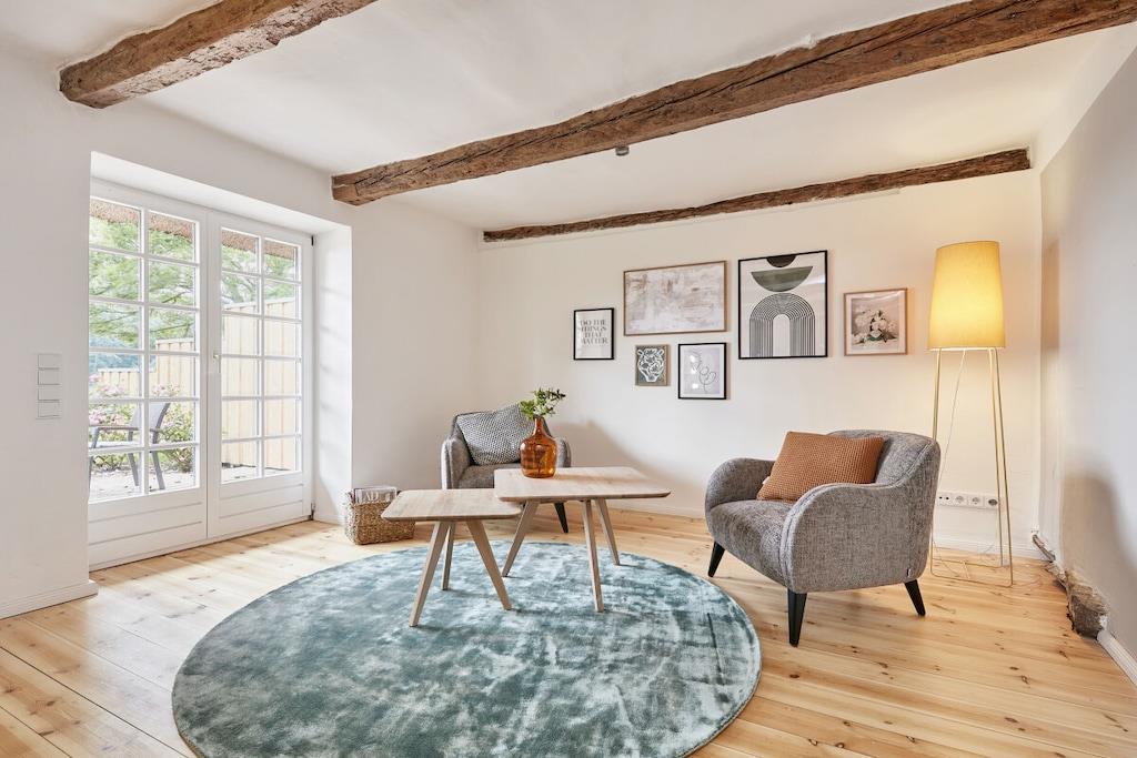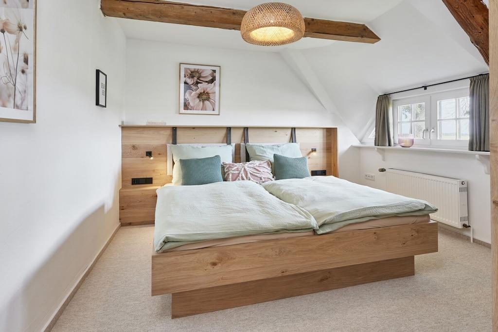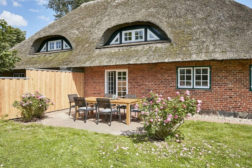 Dette halvtliggende stråtækte sommerhus på cirka 120 m² ligger få kilometer fra Oldenburg i Holsten, men alligevel omgivet af natur! Det har en stor entré, en rummelig stue, et hyggeligt køkken og et mindre brusebad i stueetagen. Ovenpå finder I tre soveværelser (hvoraf det ene er et sammenhængende værelse), et komfortabelt galleri til afslapning og et badeværelse med en behagelig bruser. Køkkenet i vores stråtækte sommerhus er meget veludstyret, og der er en havestol, en gasgrill og Wi-Fi. Om sommeren blomstrer roserne i haven, et par kyllinger går frit rundt, og udsigten over de åbne marker bringer øjeblikkelig ro. Nyd et vidunderligt ophold i vores kærligt møblerede feriehus!
