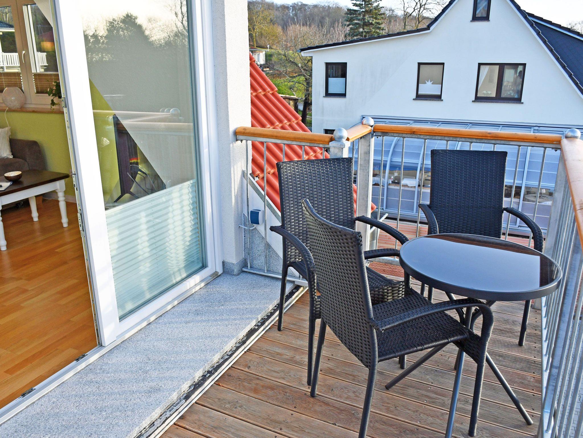 Der schöne Balkon mit Gartenmöbeln lädt zu gemütlichen Stunden ein. Hier können Sie die Abende bei einem Glas Wein ausklingen lassen und jederzeit die gute Ostseeluft und Sonne auf Rügen genießen.