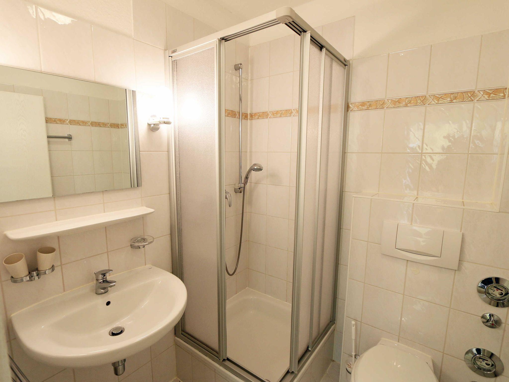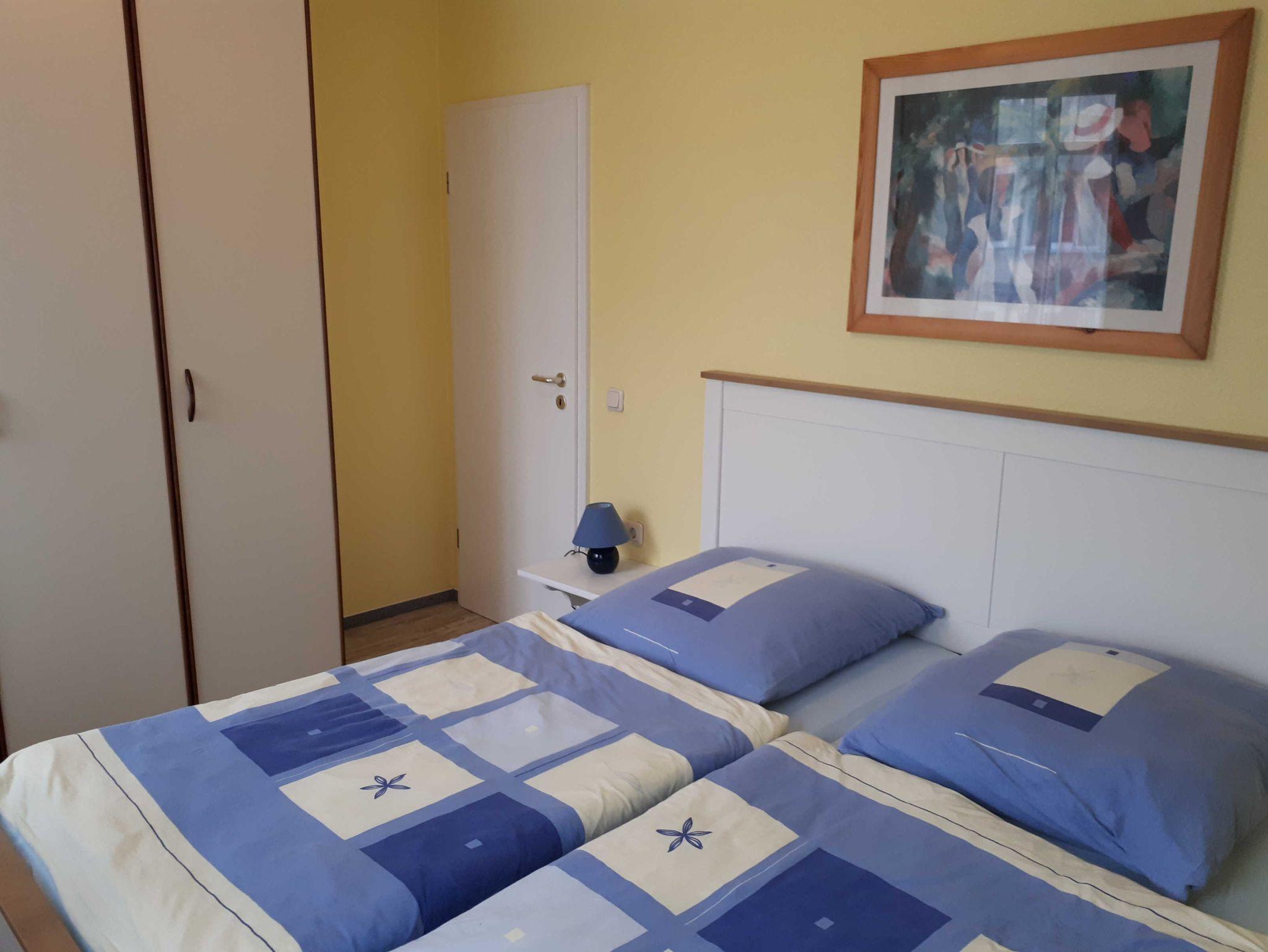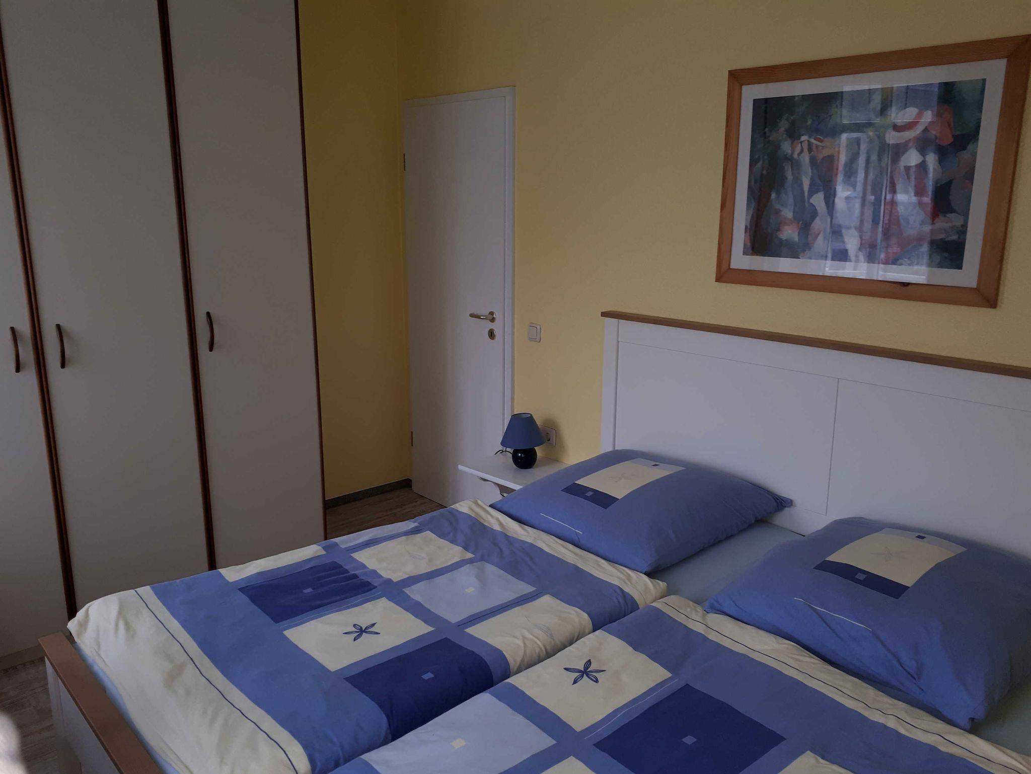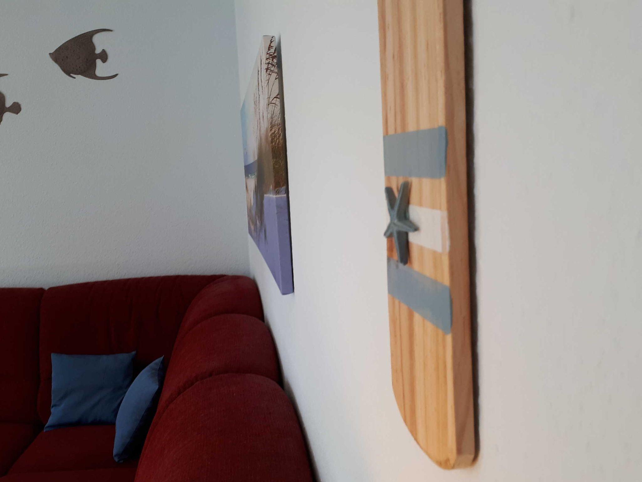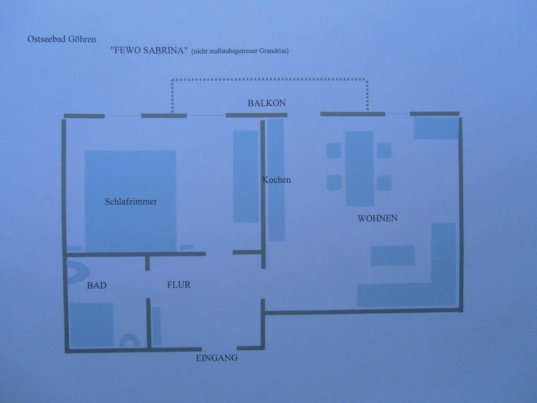 Die 40 qm große 2- Raumwohnung befindet sich in der 1. Etage. Der große Wohnraum beinhaltet eine vollausgestatte Küchenzeile mit Geschirrspüler, Backofen, Kühlschrank, Microwelle, Toaster, Kaffeemaschine, kompletten Geschirr und diversen Küchenutensilien. Ein bequemes Sofa (mit Schlaffunktion 1,20 m x 2,00 m), eine Essecke für 4 Personen und ein Flachbild-TV, kostenfreies WLAN, Bücher und Gesellschaftsspiele bieten alles,was einen gemütlichen Aufenthalt garaniert. Vom Wohnraum gelangt man auf den großzügigen separaten Südost-Balkon, wo kein Nachbar stört. Nach dem Blätterfall, im Winter ist ein seitlicher Meerblick möglich.