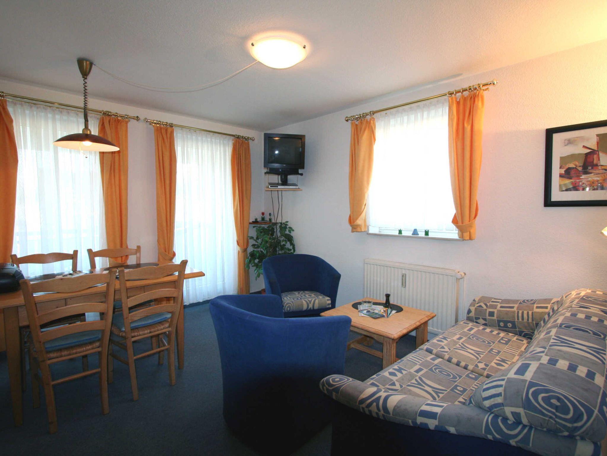 Sie wohnen in einem 2-Zimmer-Appartement für bis zu 4 Personen auf 42 m² Wohnfläche im Dachgeschoss. Ein Schlafzimmer mit Doppelbett, Wohn-/Schlafraum mit bequemer Doppelbettcouch, separater Essplatz, voll ausgestatteter Küchenzeile mit Geschirrspüler und Mikrowelle, Dusche/WC/Föhn und Waschmaschine, Balkon, Elektrogrill, SAT-Farb-TV, DVD-Player. Aussenstellplatz für PKW. Zwei Fahrräder stehen zur Verfügung.