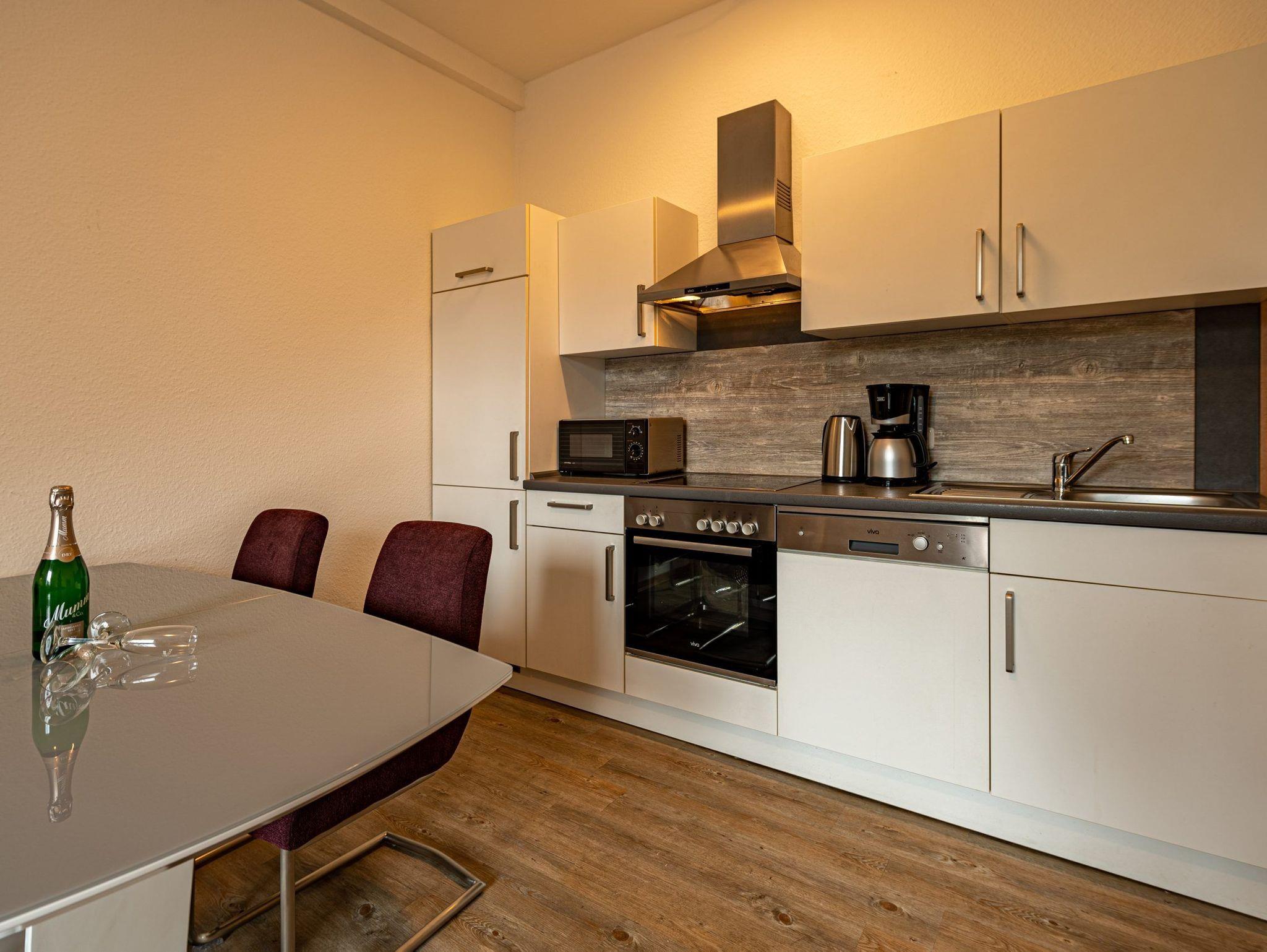 Mit Wohnraum, Küchenzeile, 2 Schlafräumen und Bad mit WC sind die Ferienwohnungen für 4 bzw. 6 Erwachsene und ein Kind im Kinderreisebett bis 3 Jahre modern und komfortabel eingerichtet. Ein kleines Kinderreisebett sowie ein Hochstuhl können auf Wunsch kostenpflichtig zugebucht werden. Die Ferienwohnung Albatros ist behindertengerecht ausgestattet.