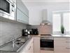 Im EG befindet sich der Wohnbereich mit einer großzügigen Sitzgruppe, Kamin sowie die moderne Küche und der Essbereich. Zur technischen Ausstattung im Wohnraum zählt ein Flachbildfernseher (65-Zoll) und der kostenfreie Internetzugang. Die Küche ist mit Backofen, Cerankochfeld, Mikrowelle, Geschirrspülmaschine, Kühl-/Gefrierkombination, Kaffeevollautomat, Wasserkocher, Toaster und diversen anderen Küchenhelfern komplett ausgestattet. Darüber hinaus gibt es Tageslicht-Duschbad mit Waschtisch, Waschmaschine und WC.