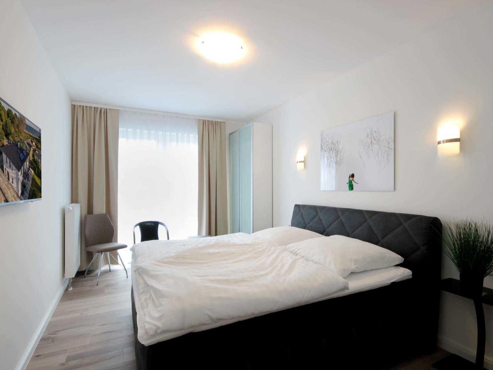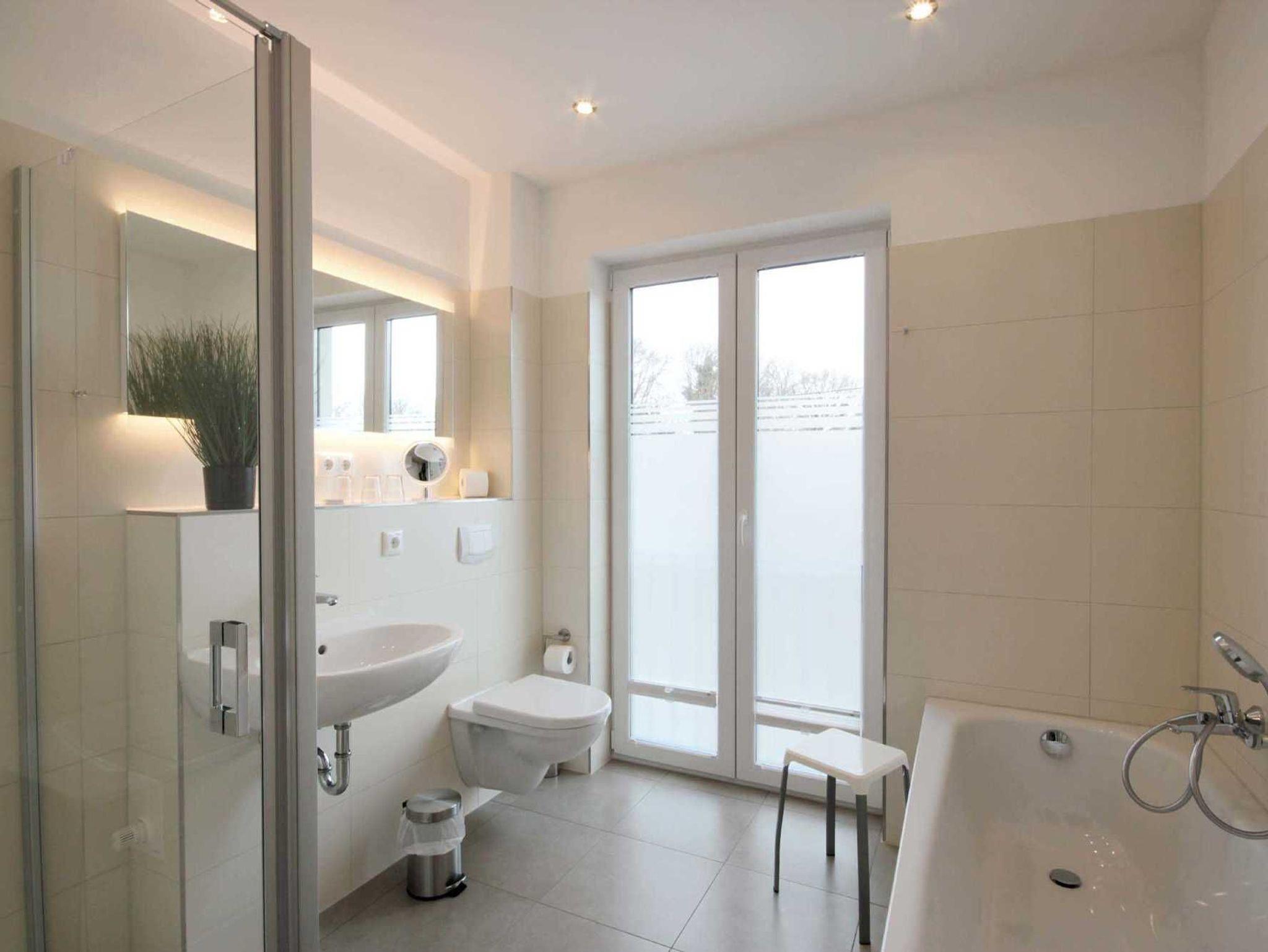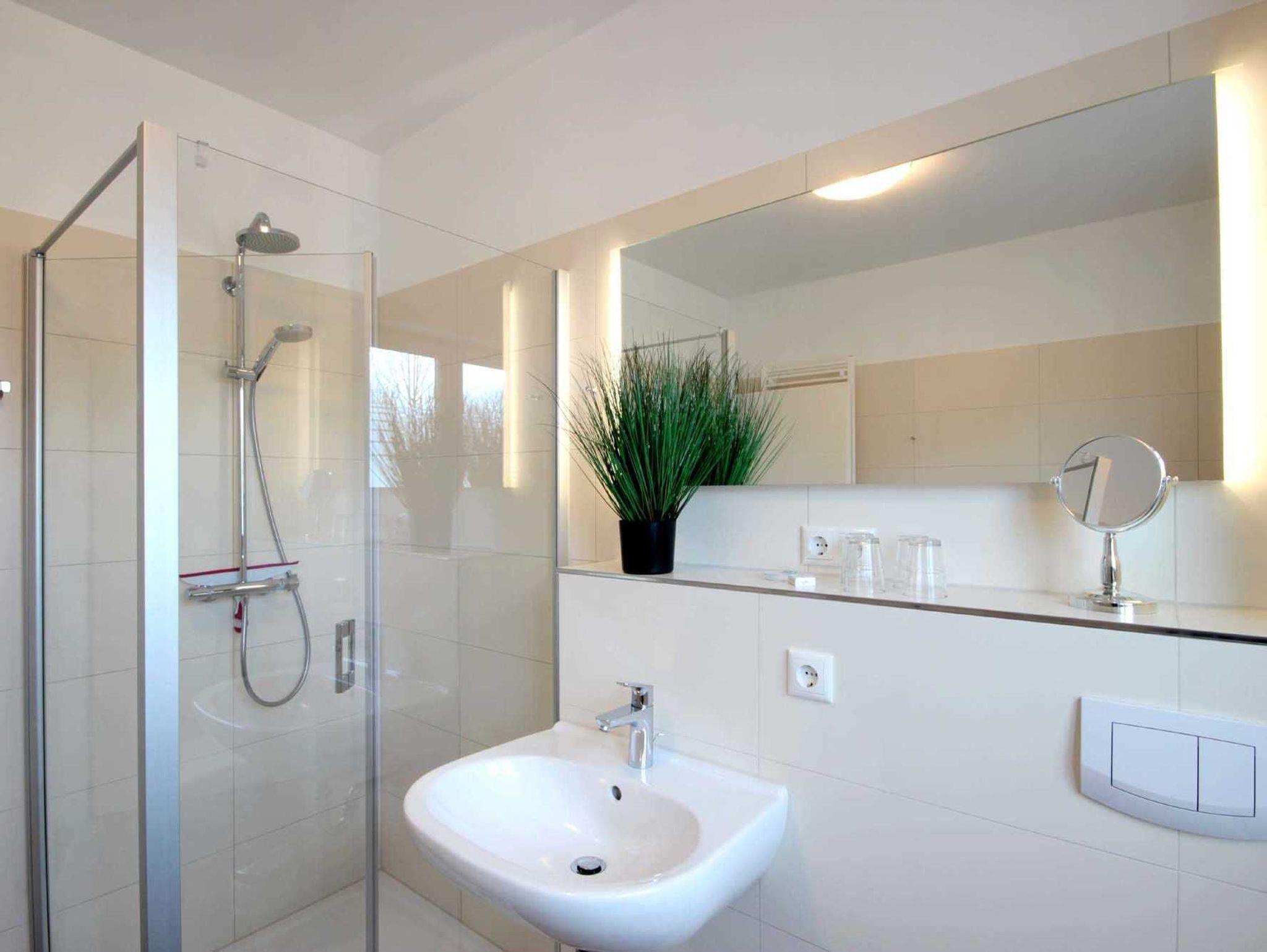 Über eine Treppe gelangen Sie in das Obergeschoss des Hauses mit 3 separaten Schlafzimmern. Hier erwarten Sie himmlische Träume in 2 gemütlichen Boxspringbetten und einem Standard-Doppelbett. In jedem Schlafraum befinden sich 1-2 Kleiderschränke. 2 Schlafräume haben einen weiteren Flachbildfernseher (43 Zoll). Ein Schlafzimmer verfügt über den direkten Zugang zum Balkon. Auf dieser Etage befindet sich nicht nur ein weiteres Tageslicht-Bad mit Dusche, Badewanne, Waschtisch und WC, sondern auch eine hauseigene Infrarotsauna (Münzbetrieb).