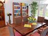 Wohnbereich in Form einer Veranda mit kleinem Tisch und 2 Lounge-Sesseln, großer Kommode sowie Esstisch mit 4 Stühlen.